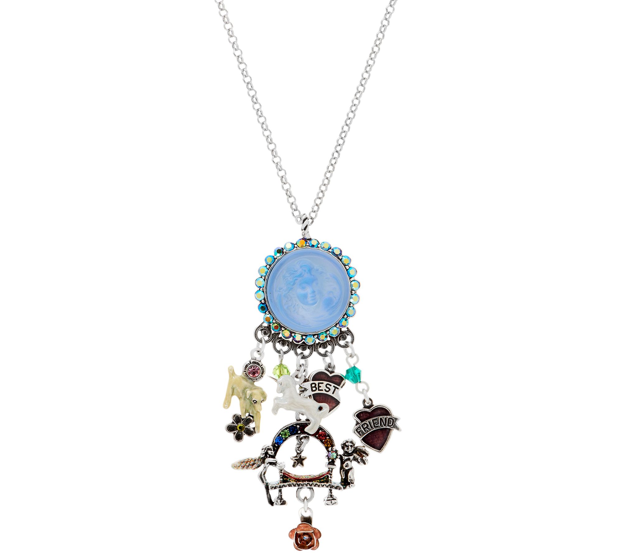 An angel, magical animals, and a crystal rainbow bridge live together in this whimsical Kirks Folly necklace, along with heart-shaped best friend charms--for a special person close to you. From Kirks Folly.