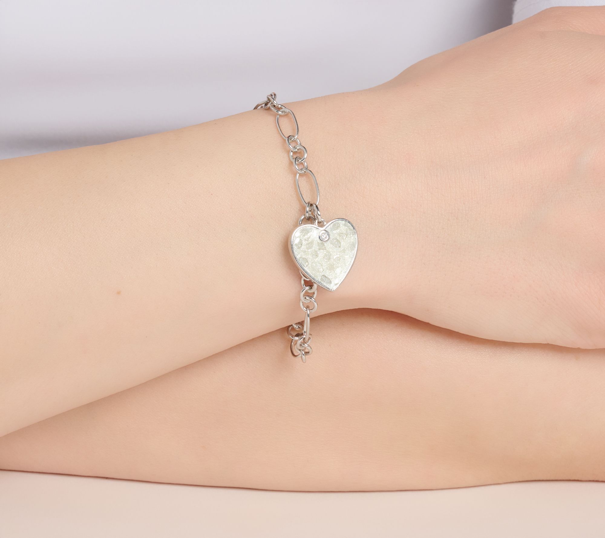 Let every moment sparkle with this stardust-inspired I Remember You by Heart bracelet, shimmering with slices of diamonds set into glossy resin and a lab-grown diamond accent for a striking effect. From Kirks Folly.
