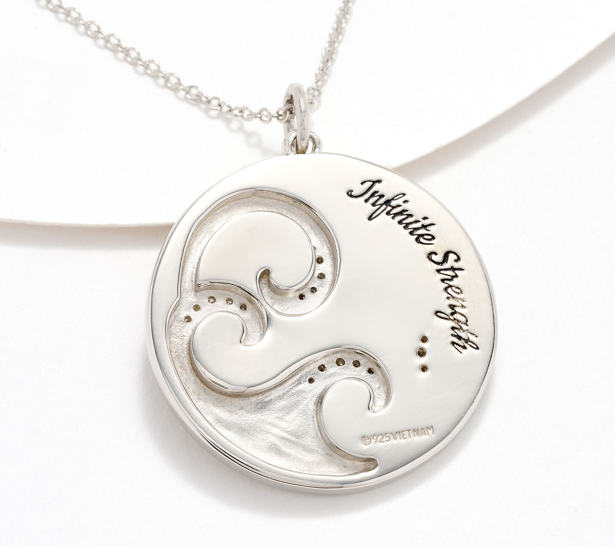 Sterling silver cable chain with wave-designed pendant; lab-grown white diamond slices in pave setting