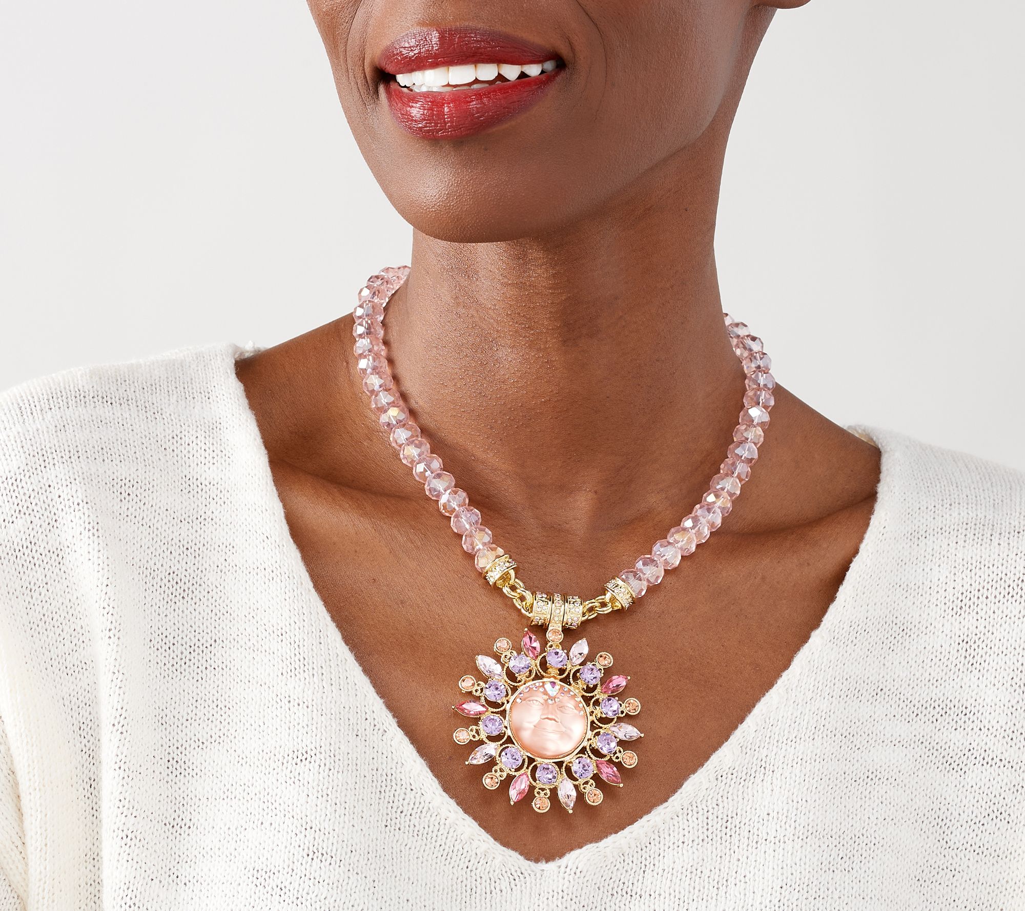 Add a touch of whimsy to a Kirks Folly magnetic necklace with this seaview moon enhancer. Faceted glass stones bring a healthy dose of sparkle to the peaceful and serene moon face that appears to glow in the light. From Kirks Folly.