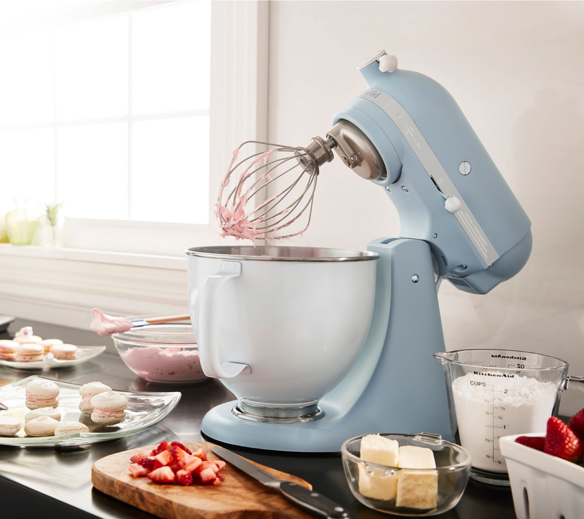 KitchenAid celebrates a century of making baking memories with this limited edition 5-qt stand mixer dressed in their heritage-inspired Misty Blue color, a tribute to 100 years of culinary history. Make memories of your own with a mixer that'll make the most of your time-honored recipes. From KitchenAid.