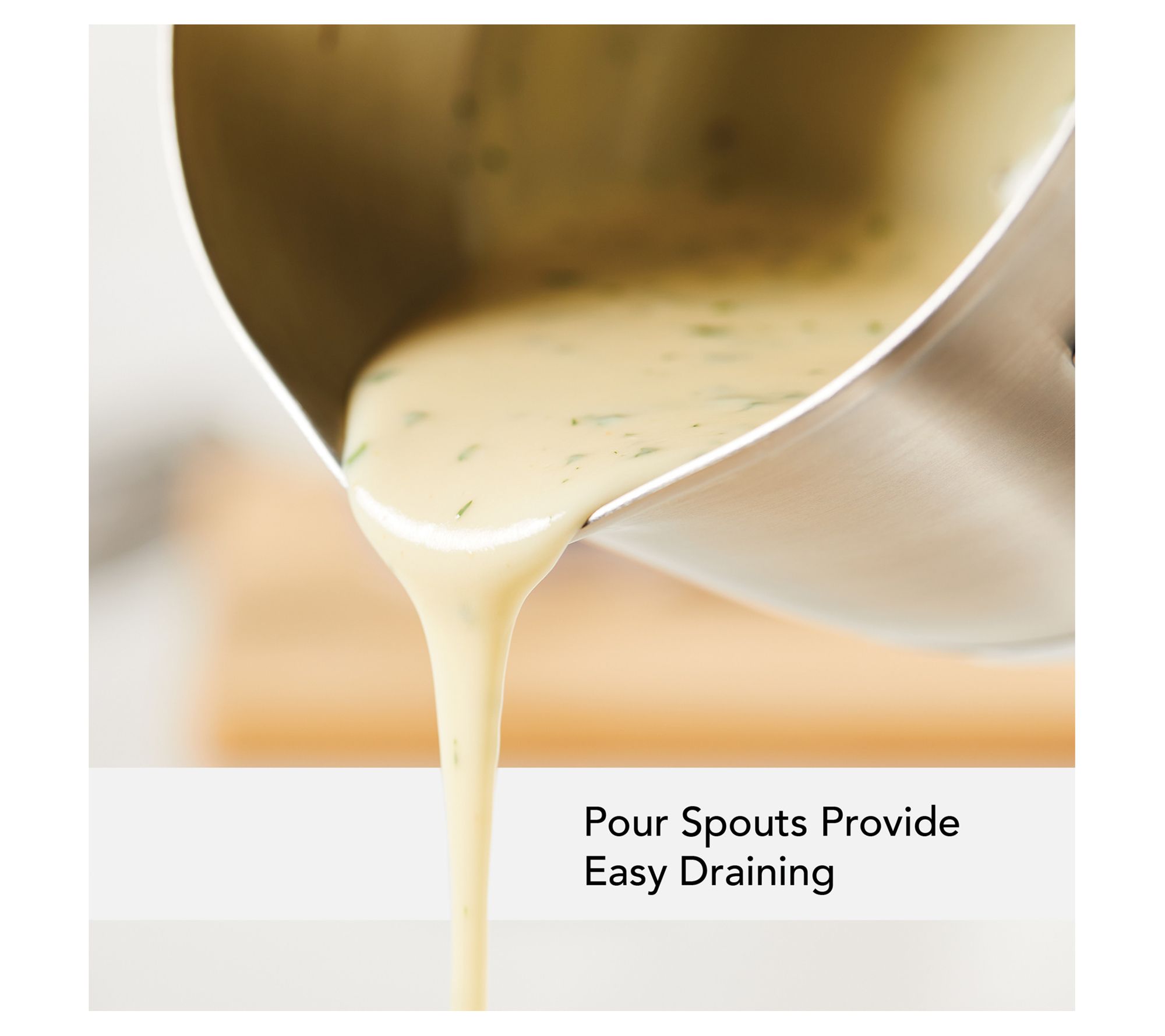Enjoy even heating with this sturdy stainless steel pan that lets you cook and pour delicious sauces and other liquids with ease. From KitchenAid.