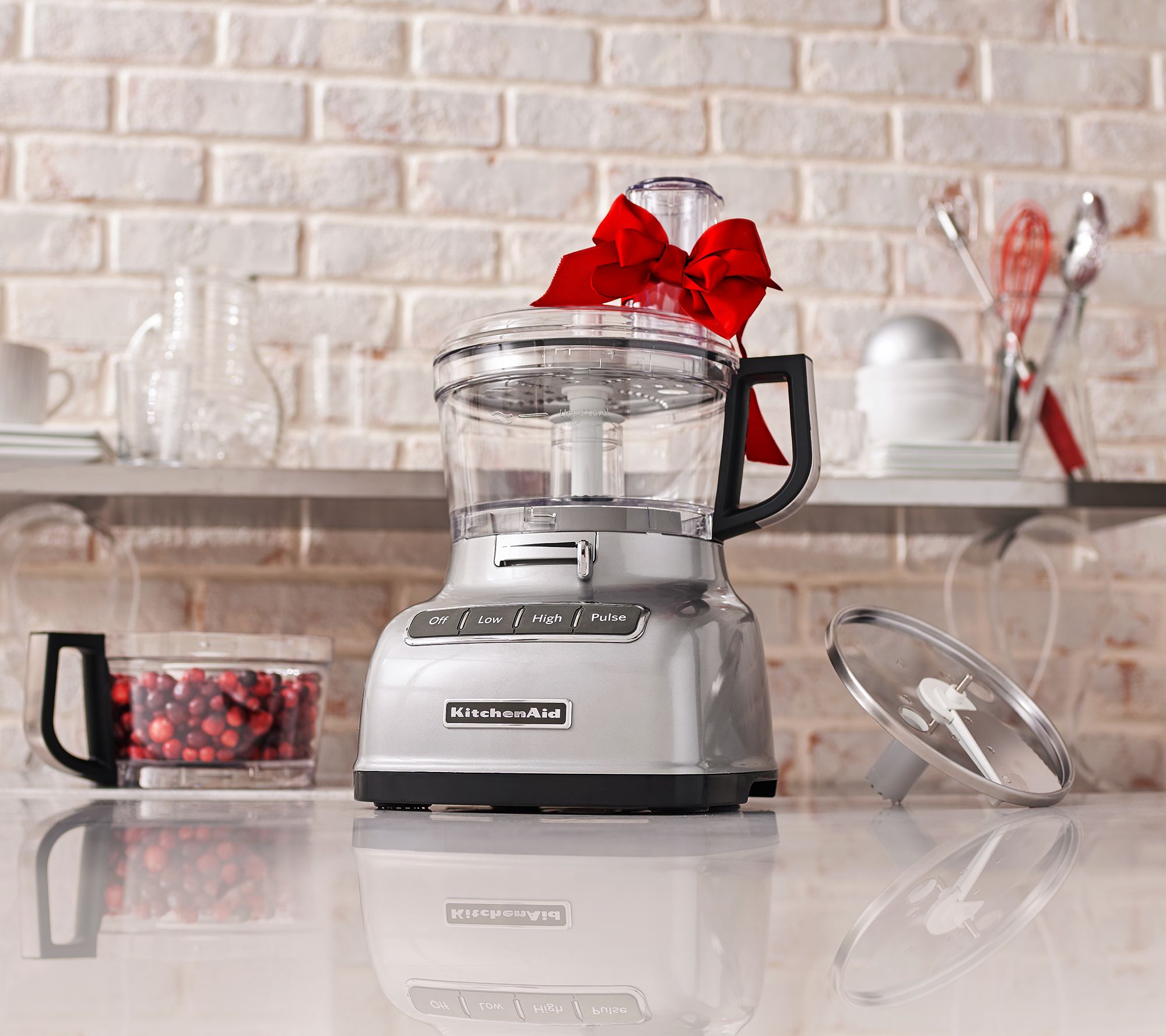 Salsa, sauces, and salads are just three foods that are easier--and quicker--to prepare with this KitchenAid processor. It's equipped with a slicing disc and a shredding disc and two 7-cup BPA-free plastic work bowls. Think of it as your little helper in the kitchen. From KitchenAid.