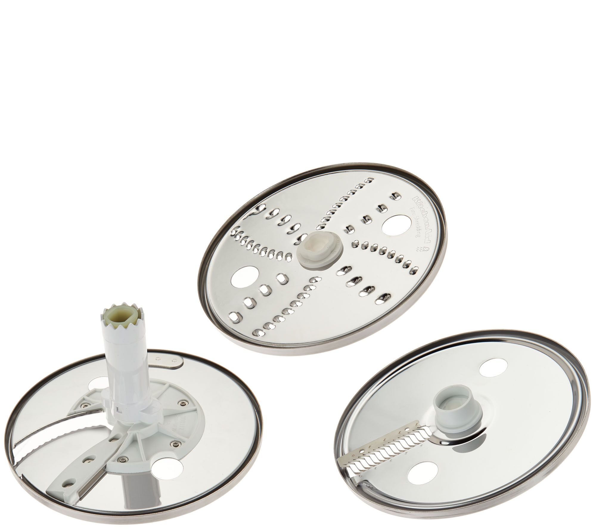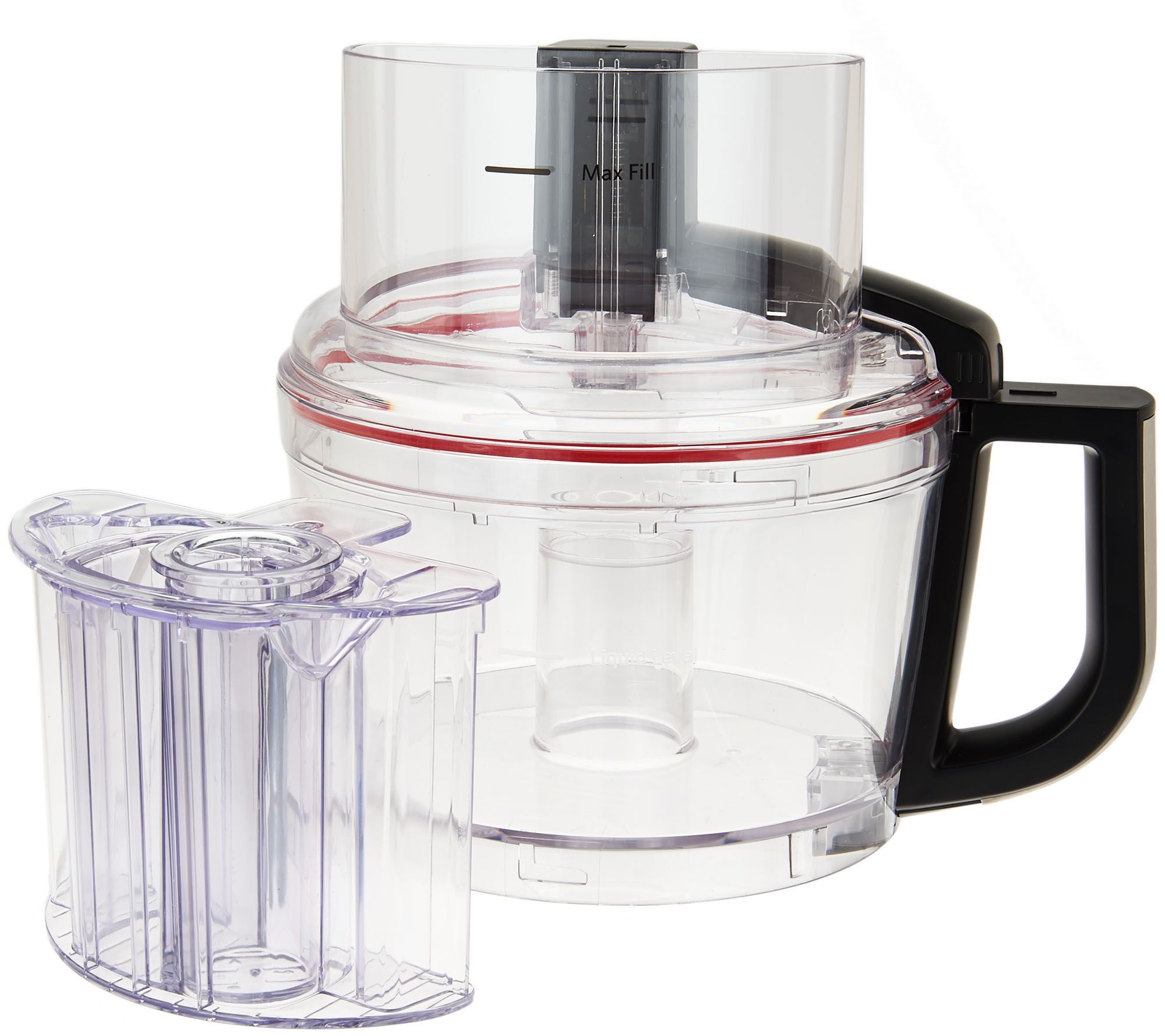 The 3-in-1 wide-mouth feed tube accommodates food of all shapes and sizes, including large items like tomatoes, cucumbers, and potatoes--with a minimum of sectioning or slicing--because the less prep, the better! Drop in smaller foods by removing the narrow pusher from the medium--there's even a hole in the narrow pusher for drizzling oil. Plus, the 9-cup size is just right for everyday jobs, while the 3-cup mini work bowl and blade make the cut for smaller jobs. From KitchenAid.