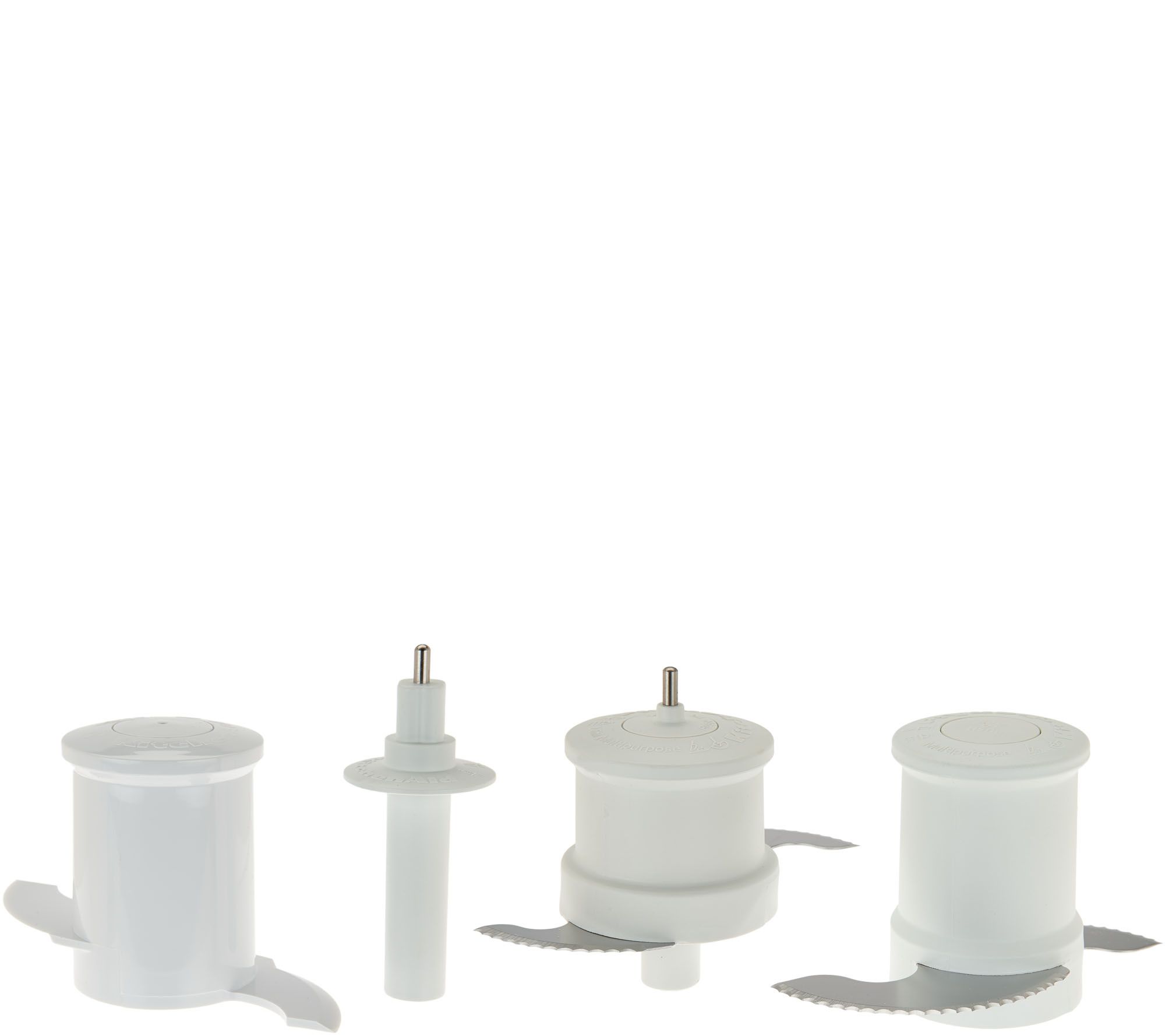 • Includes 9-cup Exact Slice food processor, 3-cup mini work bowl, multipurpose blade, mini multipurpose blade, reversible shredding disc, adjustable slicing disc, dough blade, and julienne disc