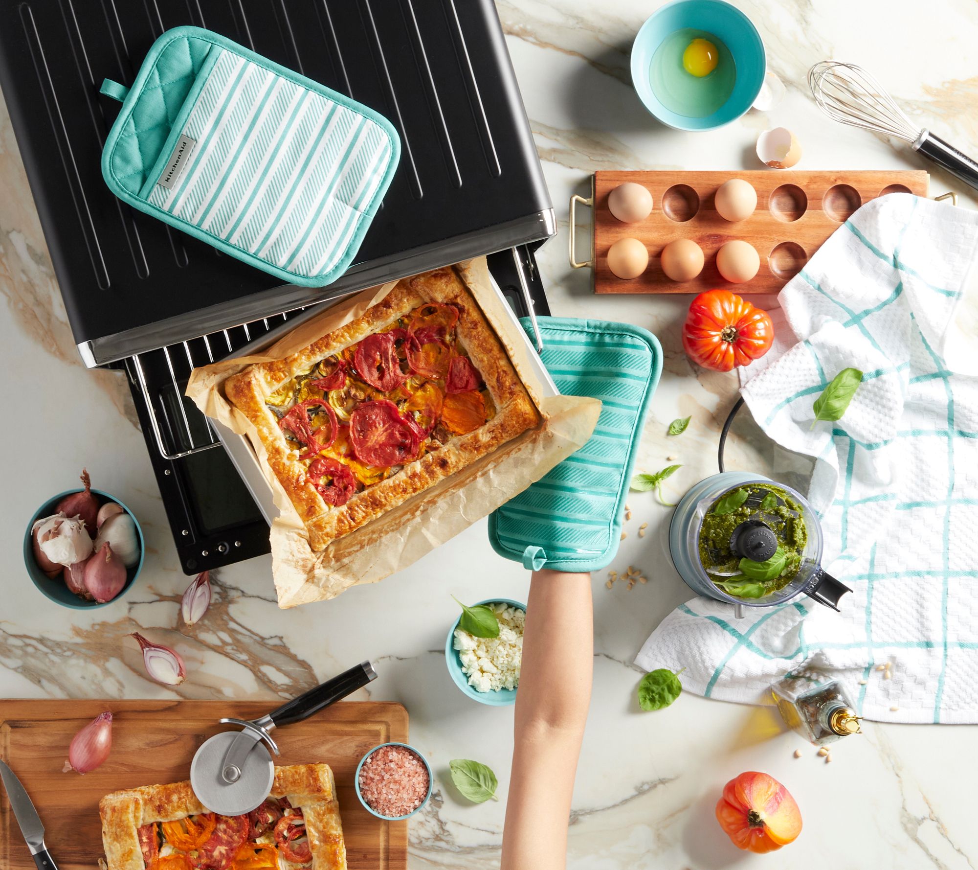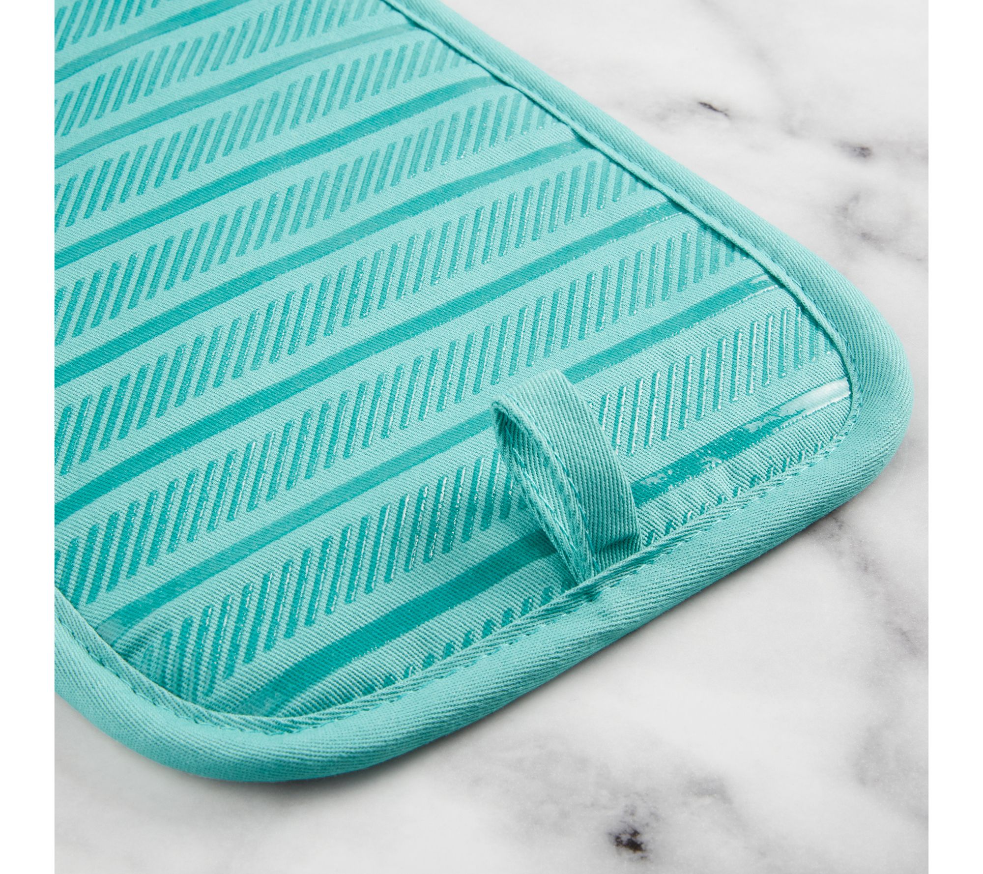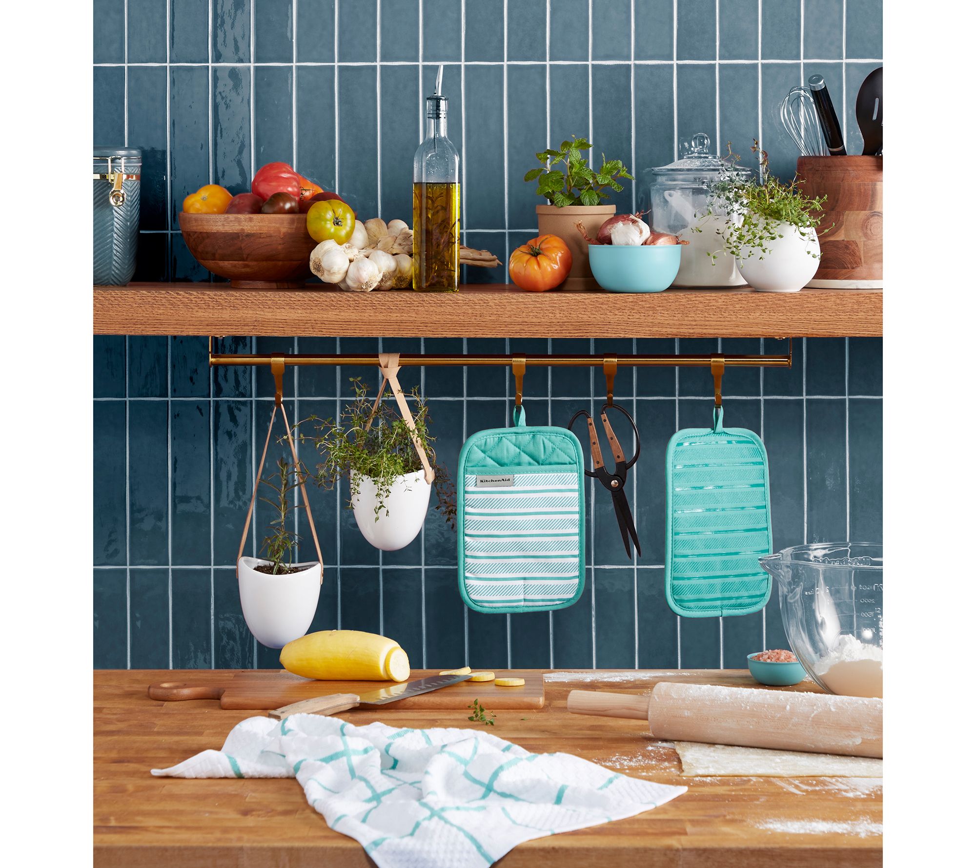 Handle hot pots and pans with ease using these KitchenAid Albany pot holders. You can confidently tackle all your cooking and baking tasks, knowing your hands are protected. The stylish design and convenient hanging loops make them a great addition to any kitchen decor. From KitchenAid.