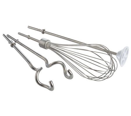 Includes hand mixer, turbo beater accessories, liquid blender rod, dough hooks, whisk, and accessory bag