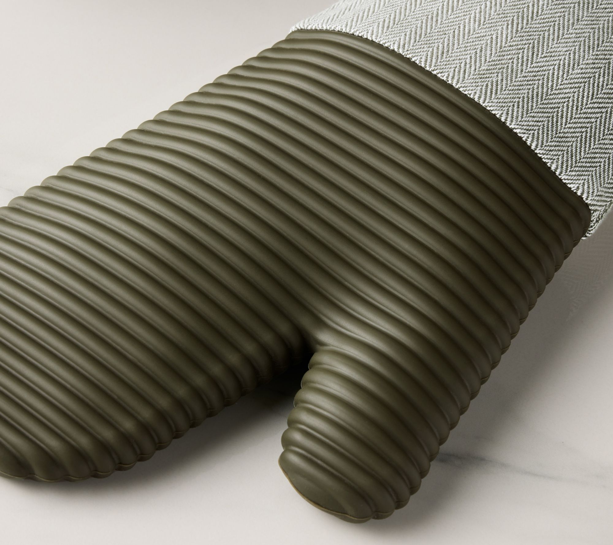 Handle hot cookware with confidence and style using these oven mitts, crafted with KitchenAid's signature Evergreen design. The ribbed silicone offers a more secure grip. The brown leather hanging loops add a touch of elegance and make storage a breeze. From KitchenAid.