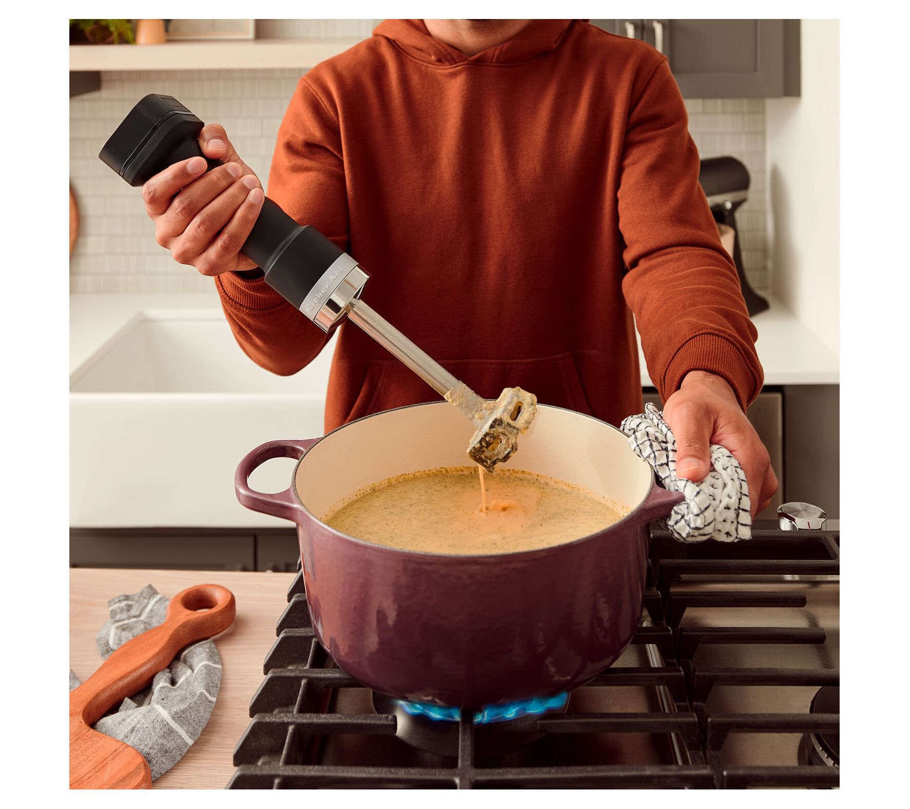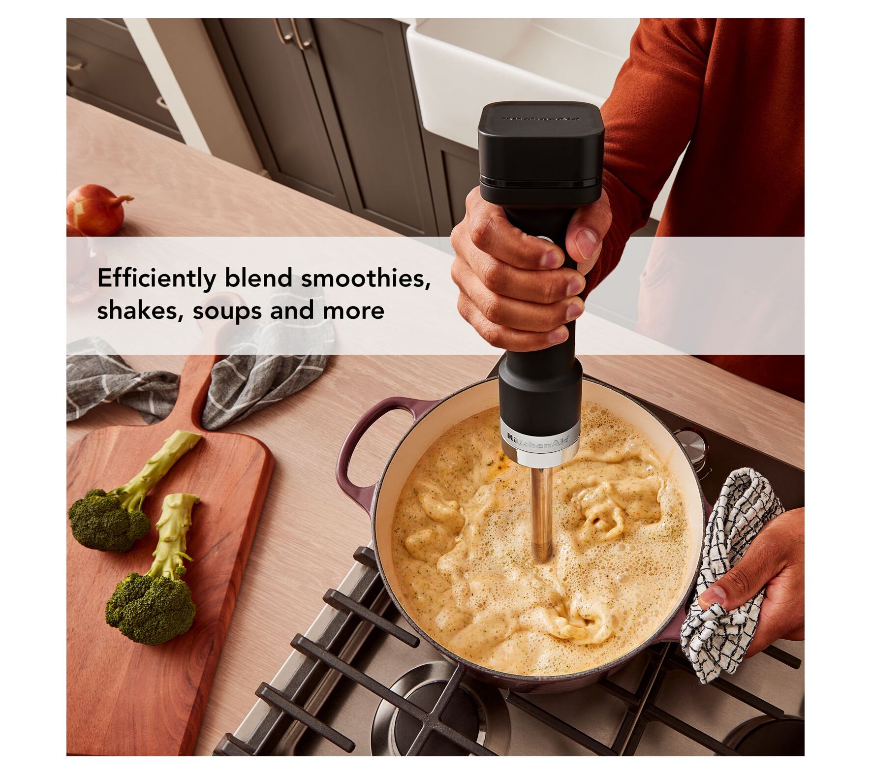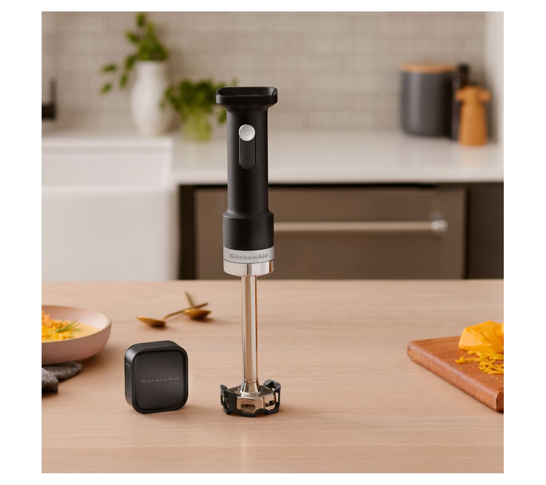 Whip, blend, and chop your favorite recipes with the KitchenAid cordless hand blender. With up to 30 minutes of continuous battery life, you can effortlessly move around the kitchen, making it easy to prepare delicious meals without being tethered to an outlet. From creamy soups to refreshing smoothies, this versatile tool adapts to all your culinary needs. From KitchenAid.