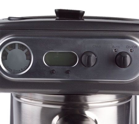 The perfect cup of joe will await you each morning with this programmable, 12-cup coffeemaker from KitchenAid. The 1350W stainless steel heat pump brews quickly and deliciously for smooth, flavorful coffee. A full-dispersion showerhead saturates the grounds in the filter basket, so you get the fullest flavor. An easy-to-set, 24-hour timer lets you decide when you want your coffee to be ready. And, a clever, time-since-brewed display assures you'll never have a cup that's been sitting around for too long. Die-cast metal housing. Auto-shutoff.