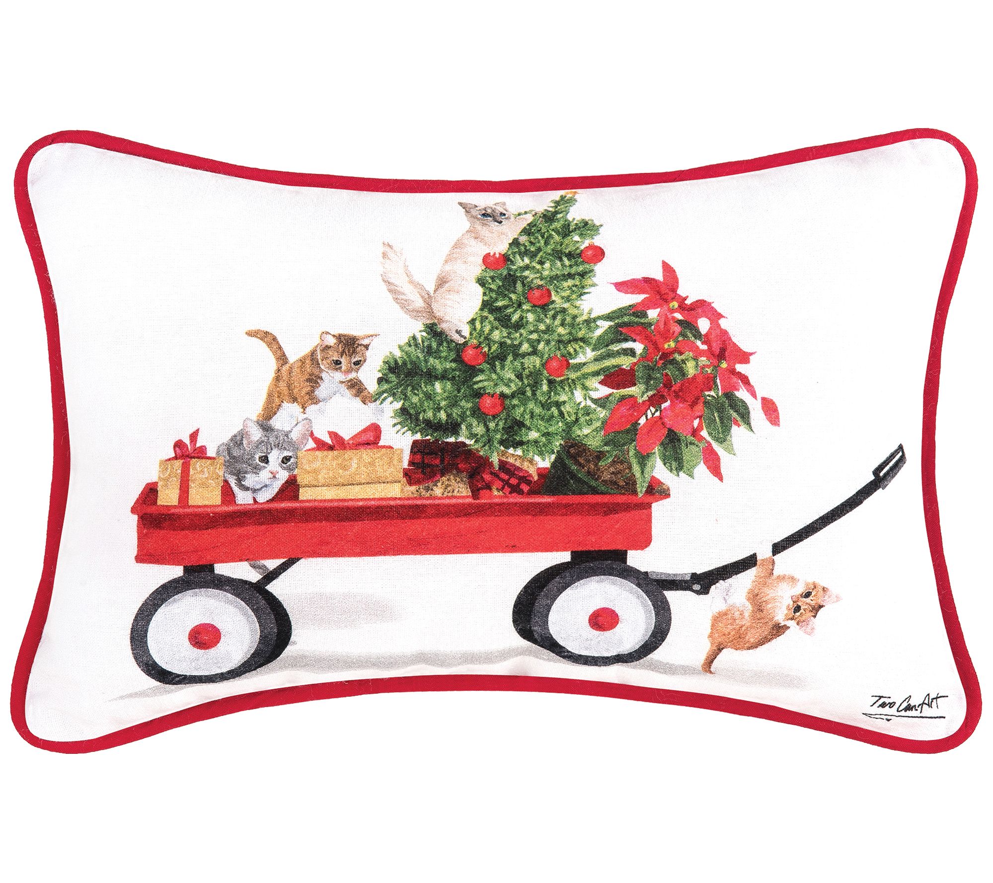 Piled high with wrapped gifts, poinsettias, and a decorated tree, these playful kitties are ready to deliver a wagon full of cheer to your holiday home. From the Valerie Parr Hill Collection.