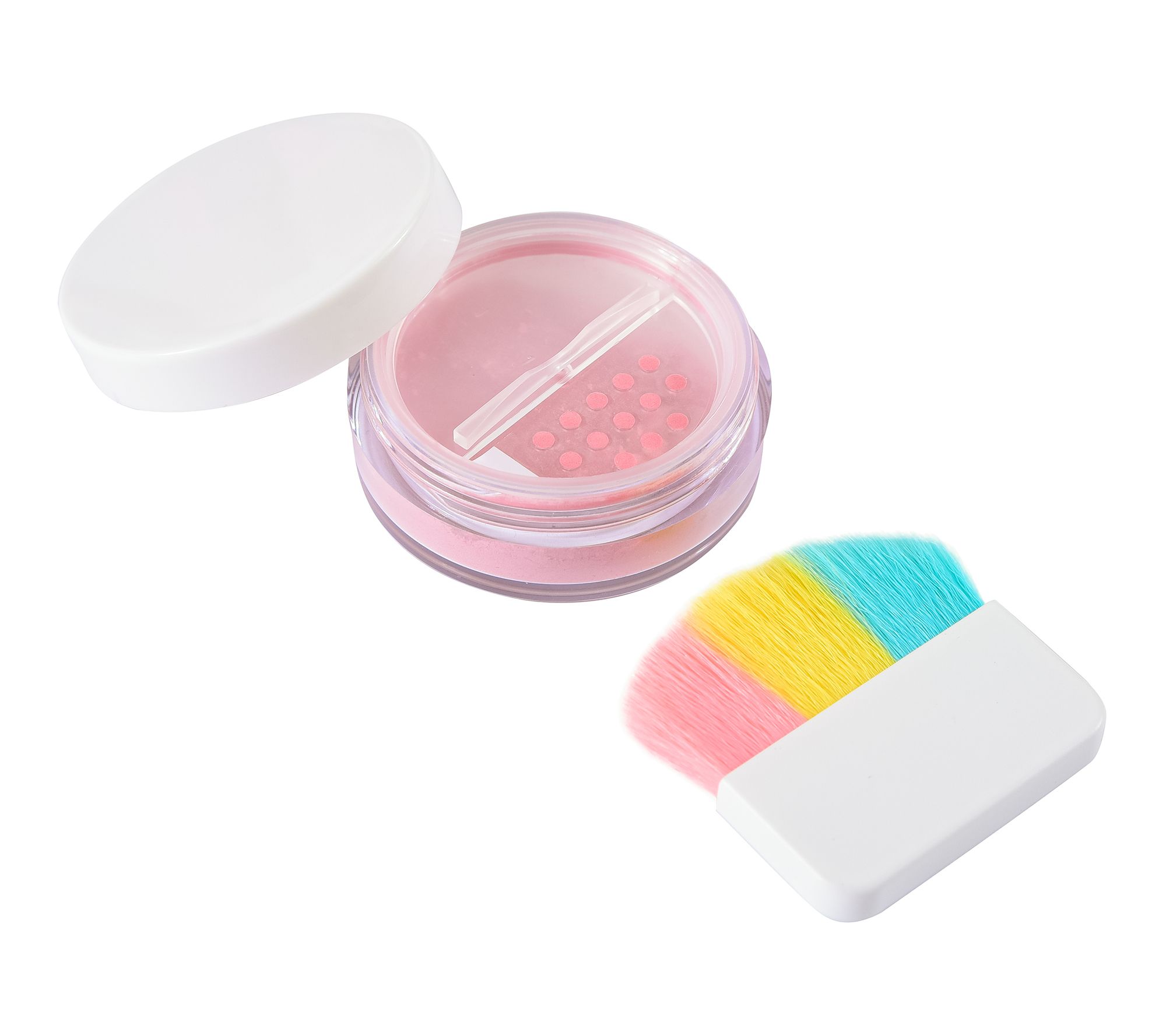 • Includes loose mineral powder eye shadow in Gumdrop Purple, loose mineral powder eye shadow in Berry Fluff, loose mineral powder blush in Candy Floss, nail polish in Purple Cloud, Dazzling body lotion, Watermelon Slice lip shimmer, rainbow blush brush, and eye shadow applicator
