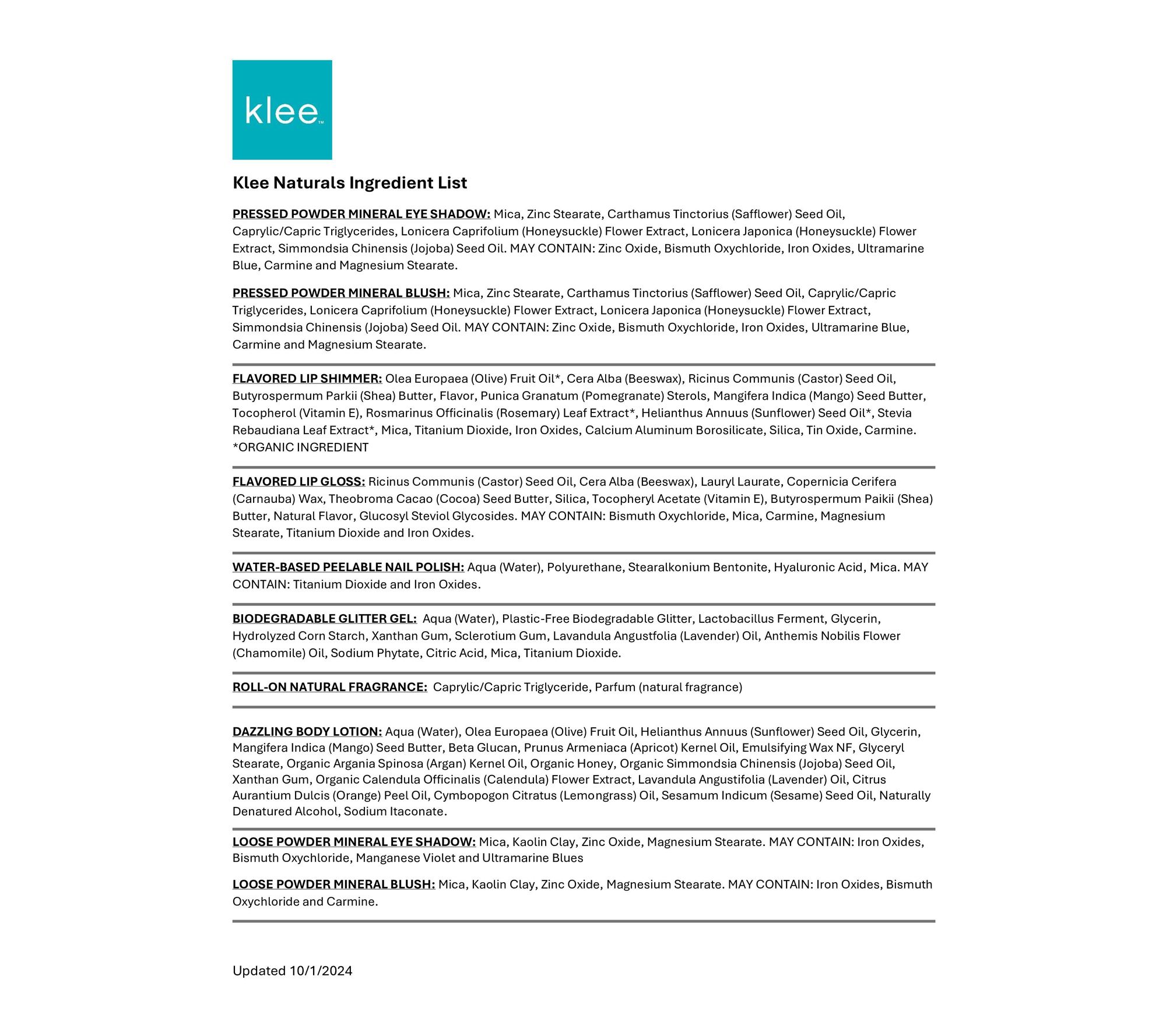 Klee Naturals Candy Cloud Fairy Kids' Mineral Makeup Set