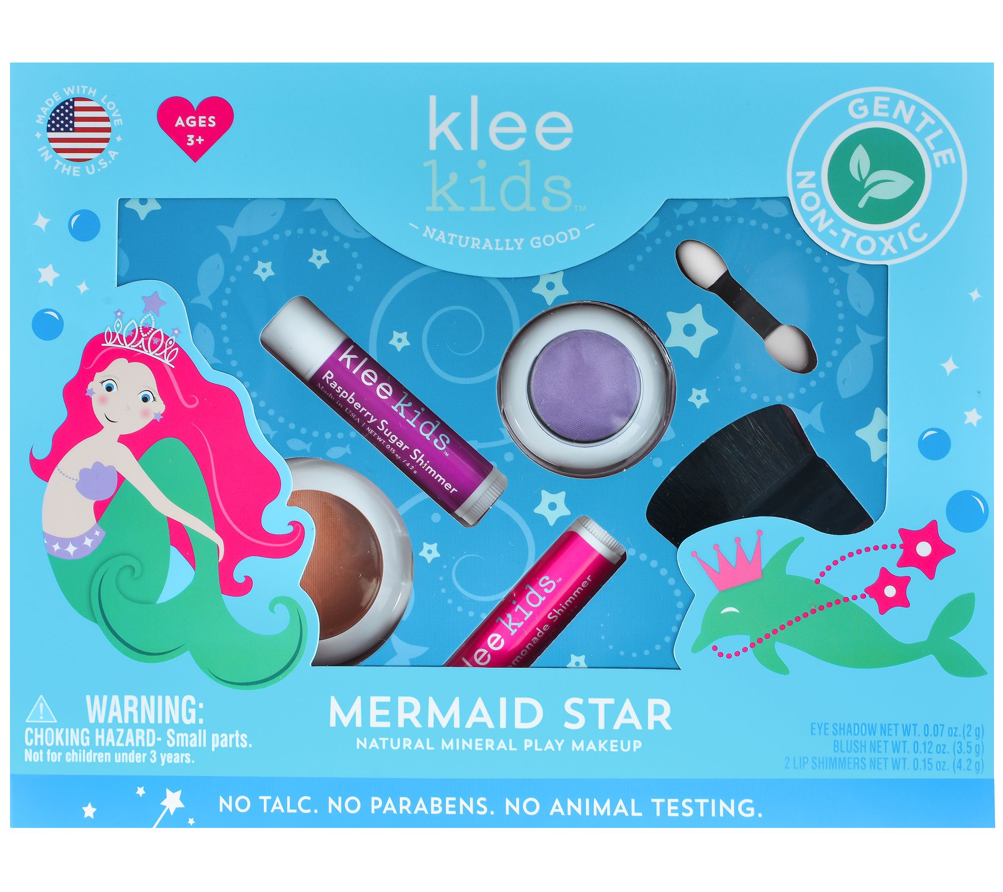 Created for that imaginative little girl playing dress up, Klee Naturals Mermaid Star Makeup Set includes a pretty eye shadow, sweet blush, two lip shimmers, and easy-to-use applicators.