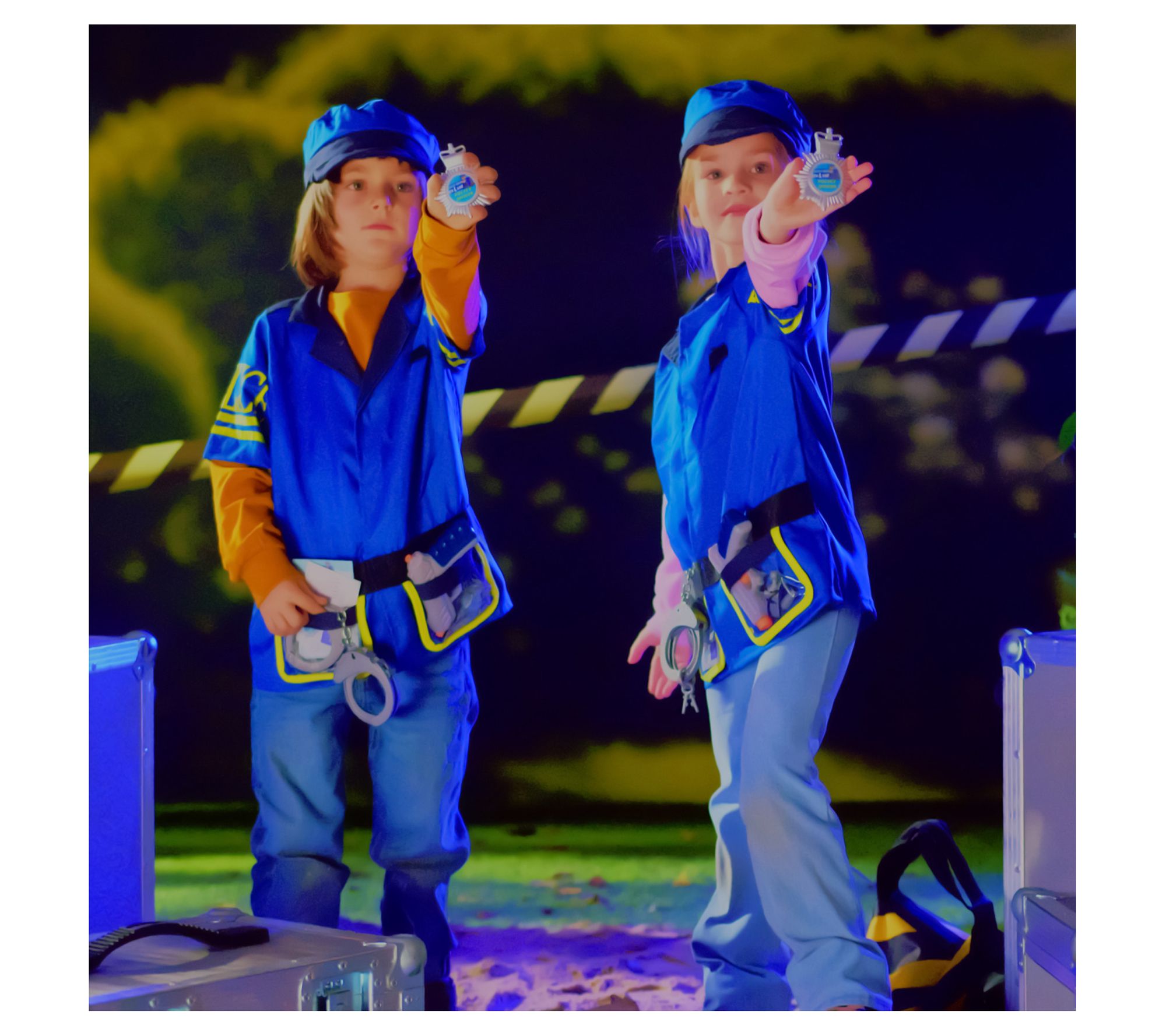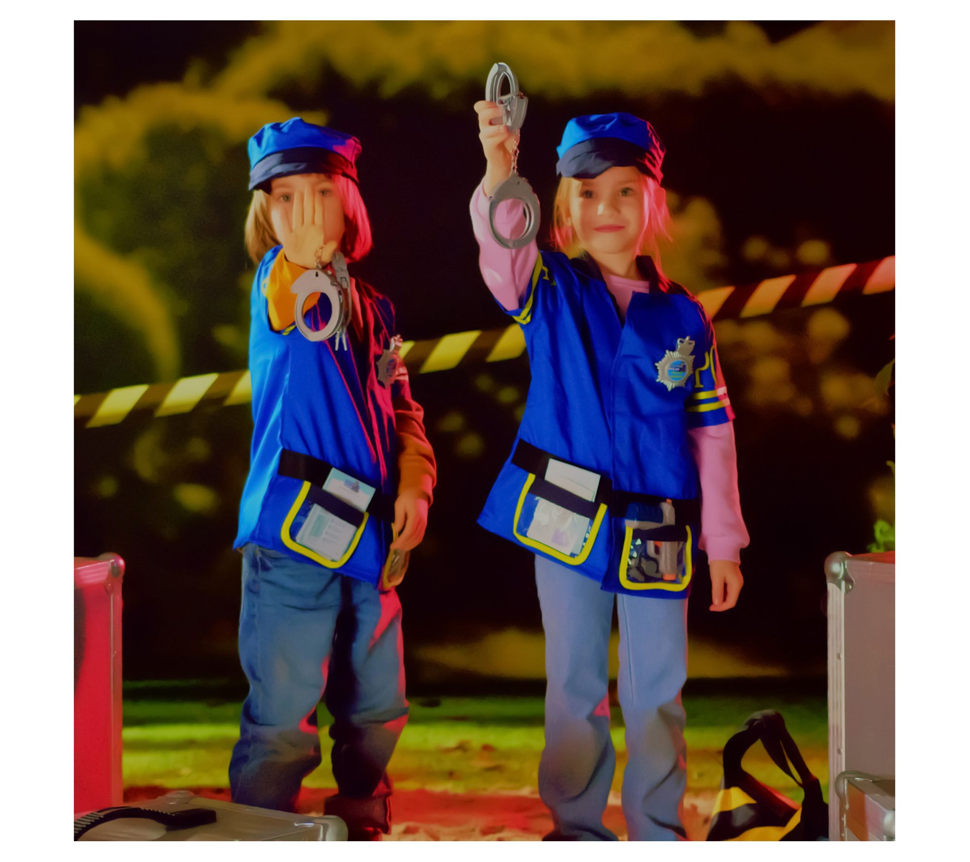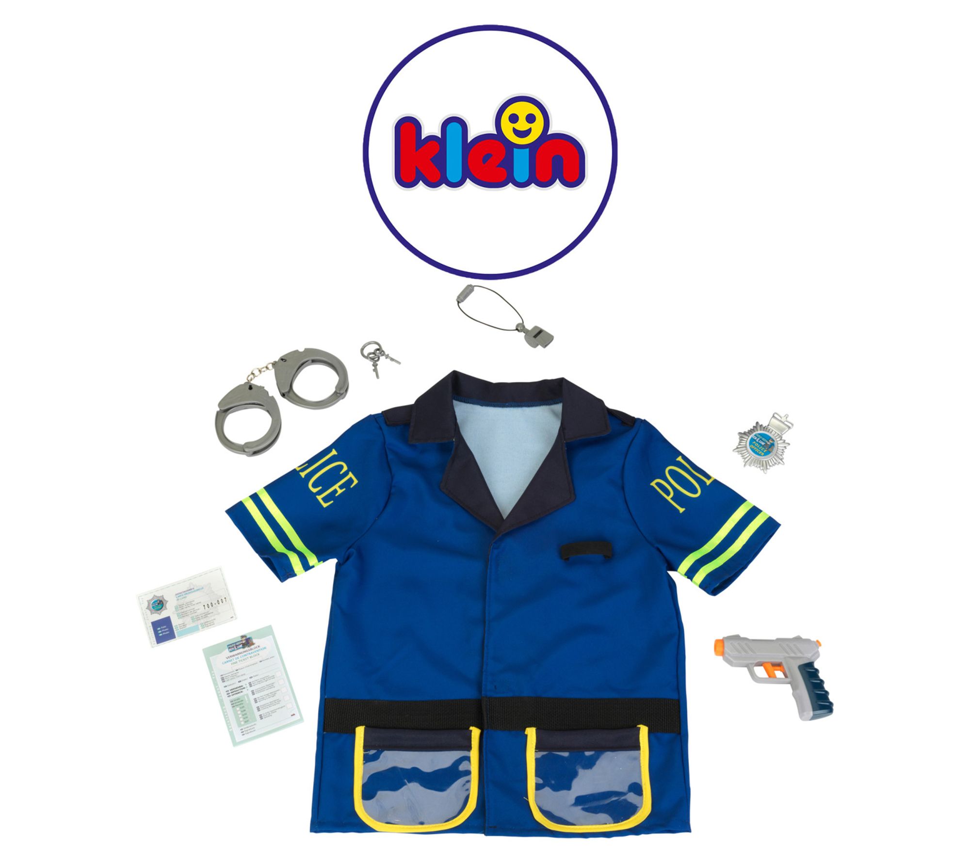 This police costume playset includes everything budding officers need—from hats to water pistols—to keep the peace. Your child will learn communication and empathy while having lots of fun. From Klein.
