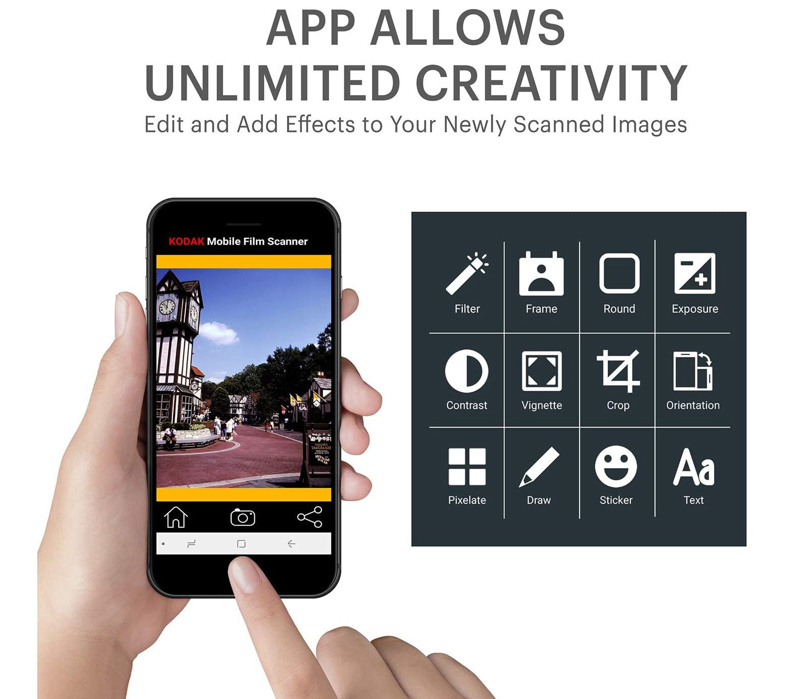 Display, edit, save, and share old film photographs in seconds with just your smartphone and this mobile film scanner. From Kodak.