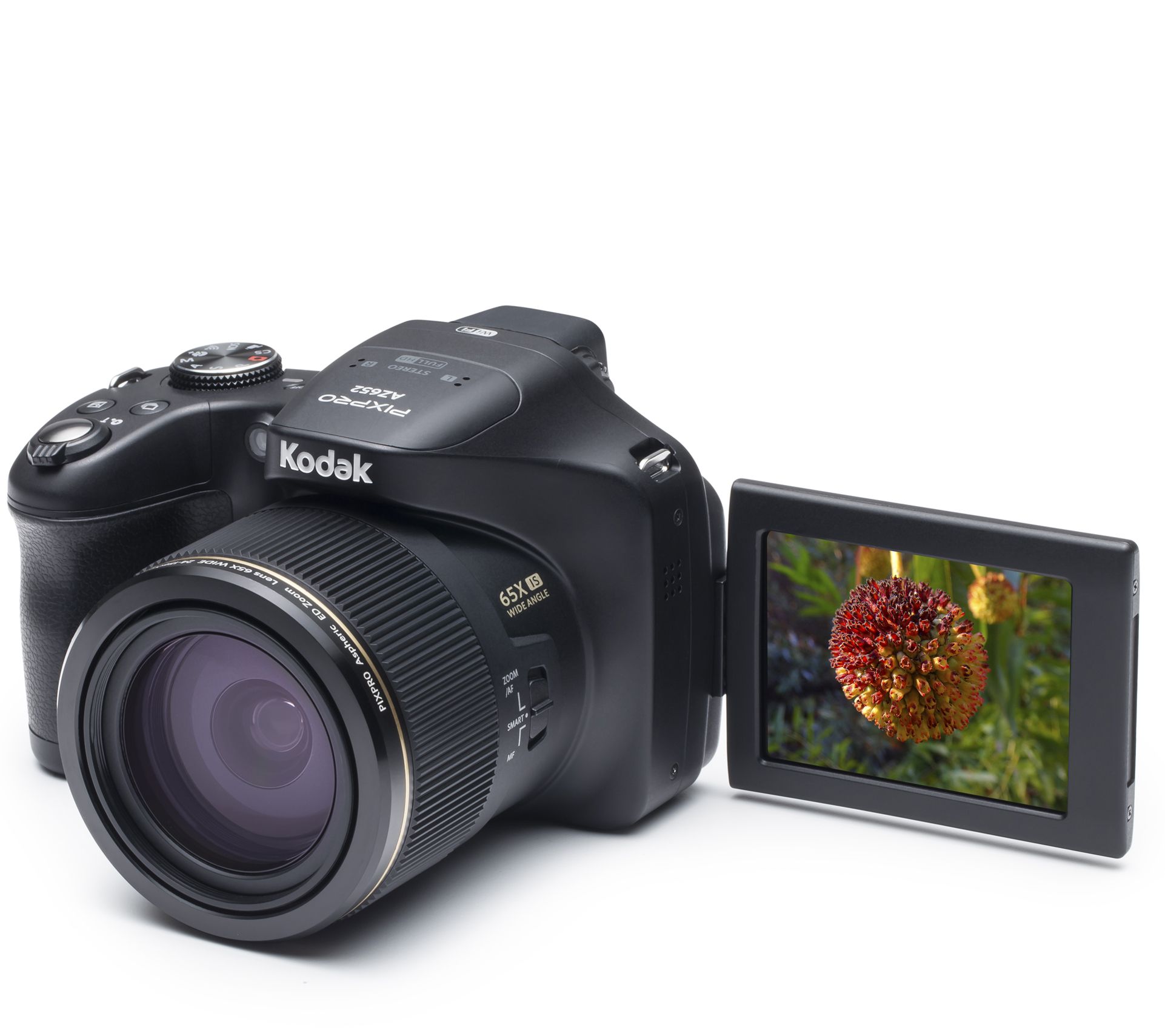 Find a host of new ways to share your story with the Kodak PIXPRO AZ652 digital camera. Snap up-close-and-personal portraits with its 65X optical zoom or sweeping 360-degree panorama landscapes, then share them in seconds via built-in Wi-Fi. From Kodak.