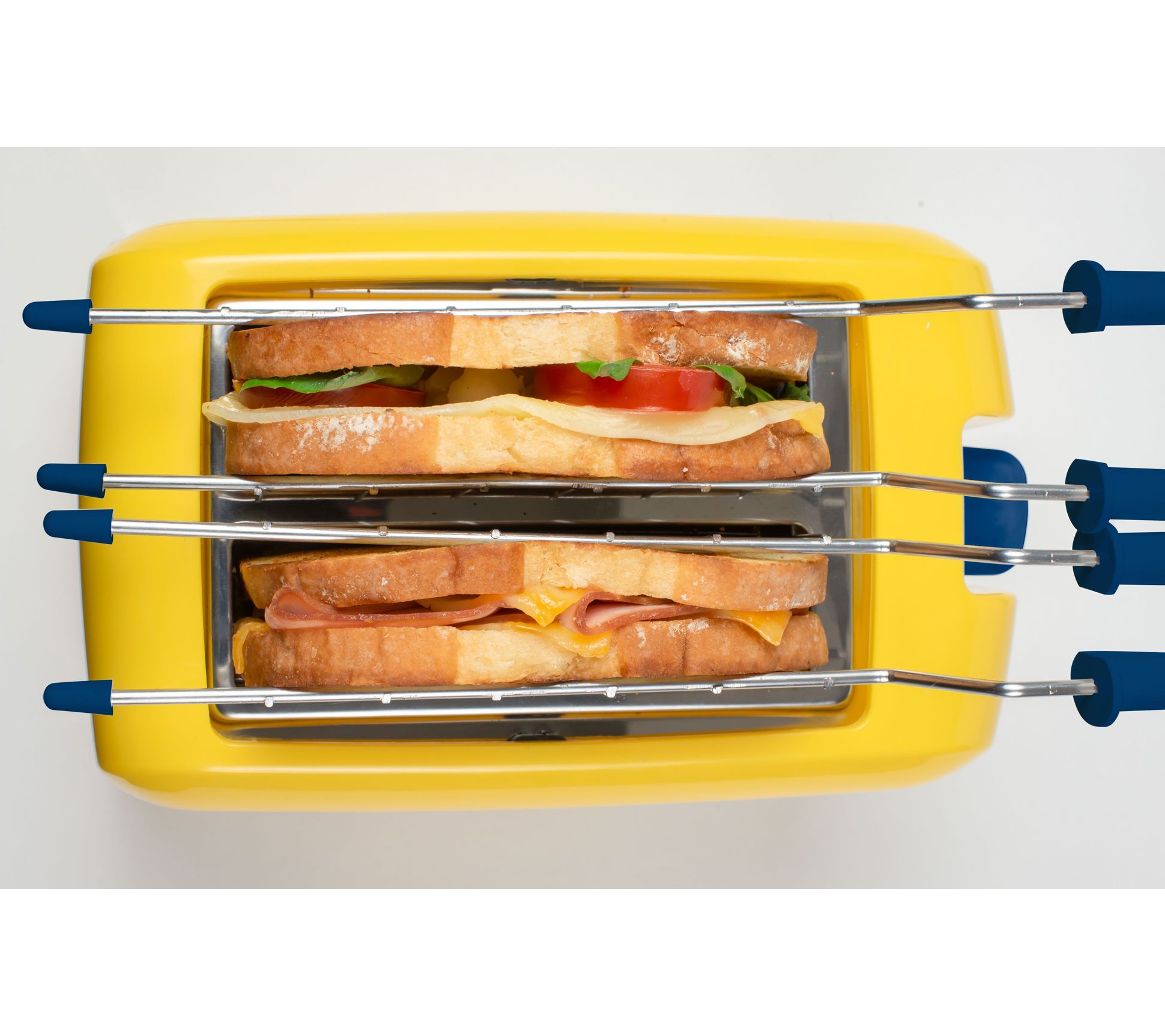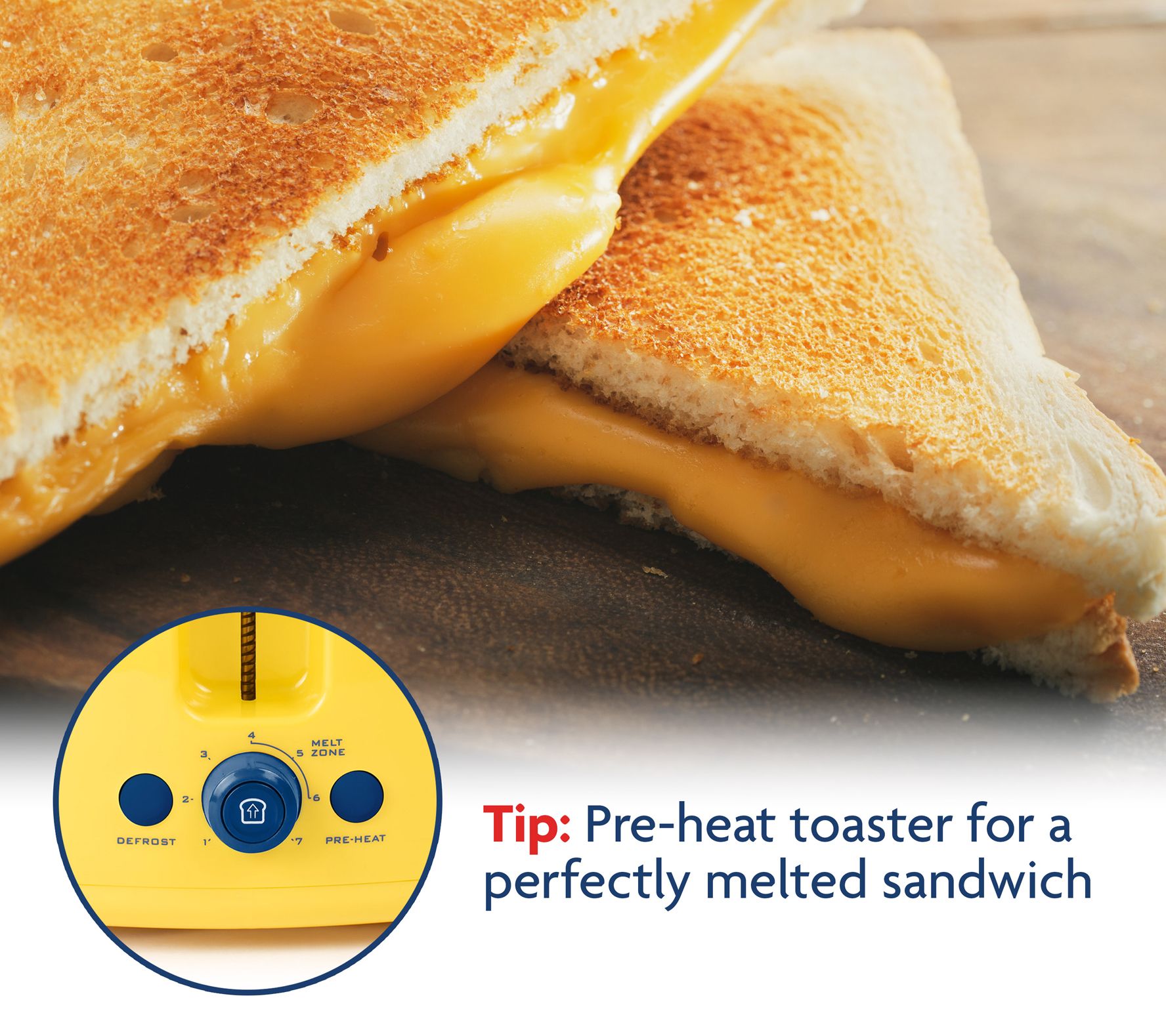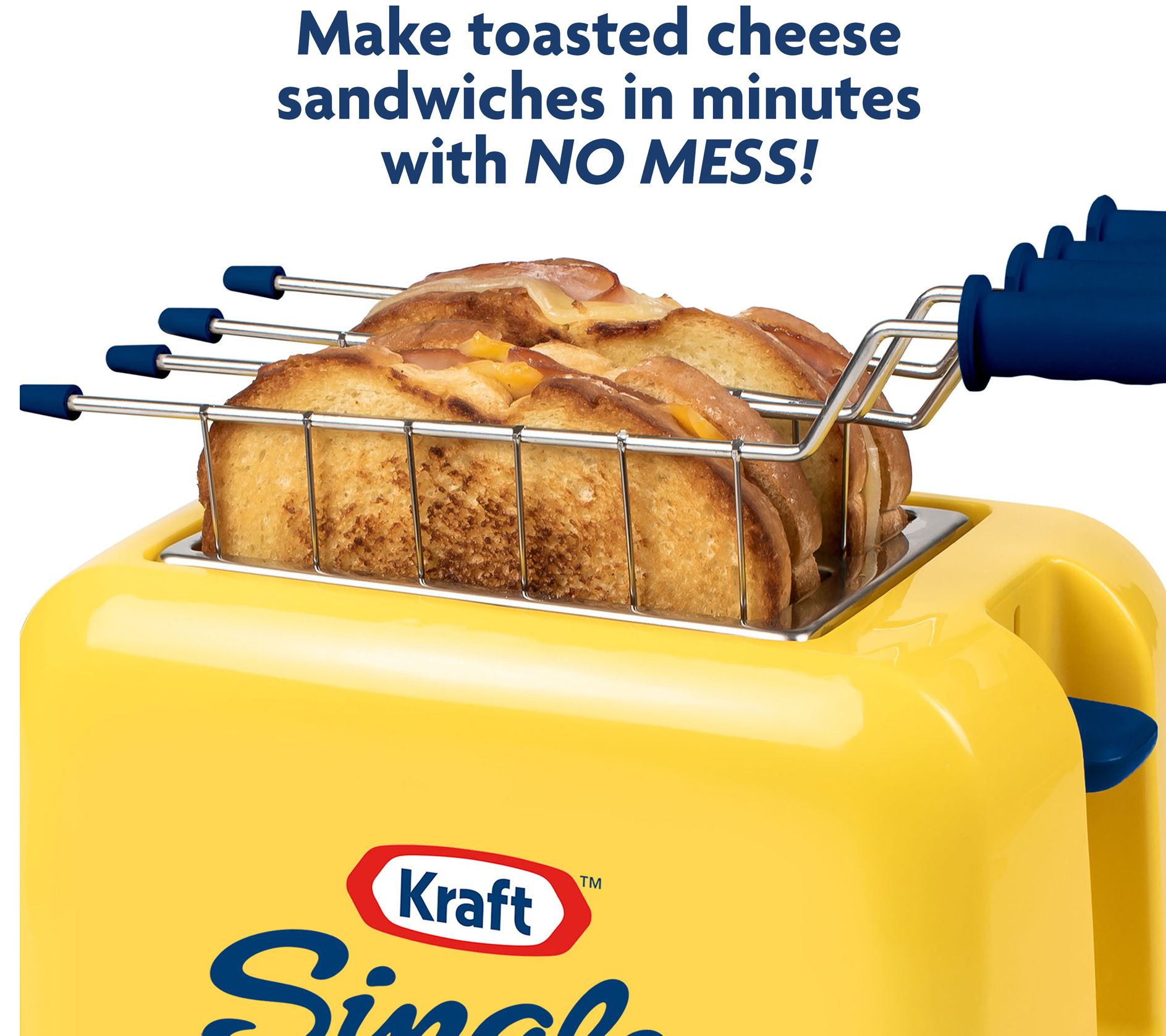 Make perfectly toasted, hot and melty sandwiches in just minutes with this fun grilled cheese maker, featuring two slots, a handy drip tray, and an adjustable toasting dial for perfect results. From KRAFT.