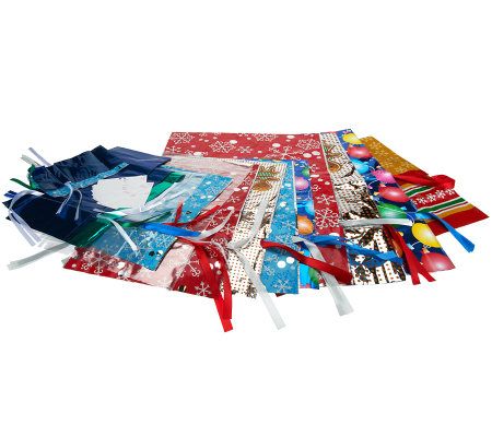 Includes seven small bags, six medium bags, three bottle bags, five large bags, four extra-large bags, one jumbo bag, and 26 gift tags