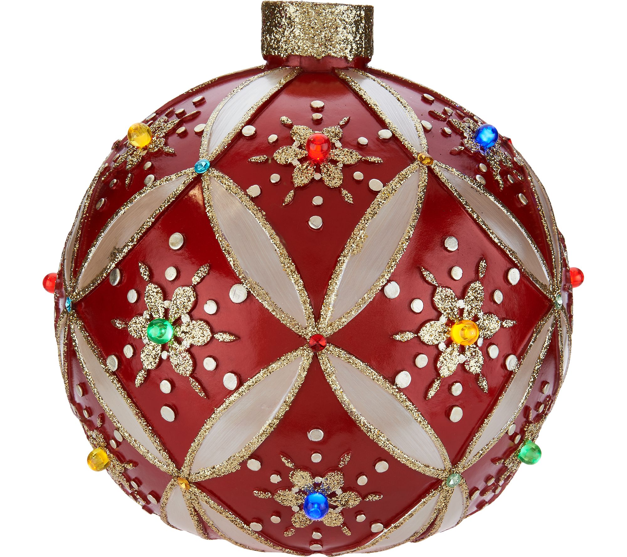 Go big or go ho-ho-home! Decorate your holiday home with this oversized, illuminated ornament by a fireplace, under a tree, on a porch, or in your landscaping for an impressive, festive display. From Kringle Express.
