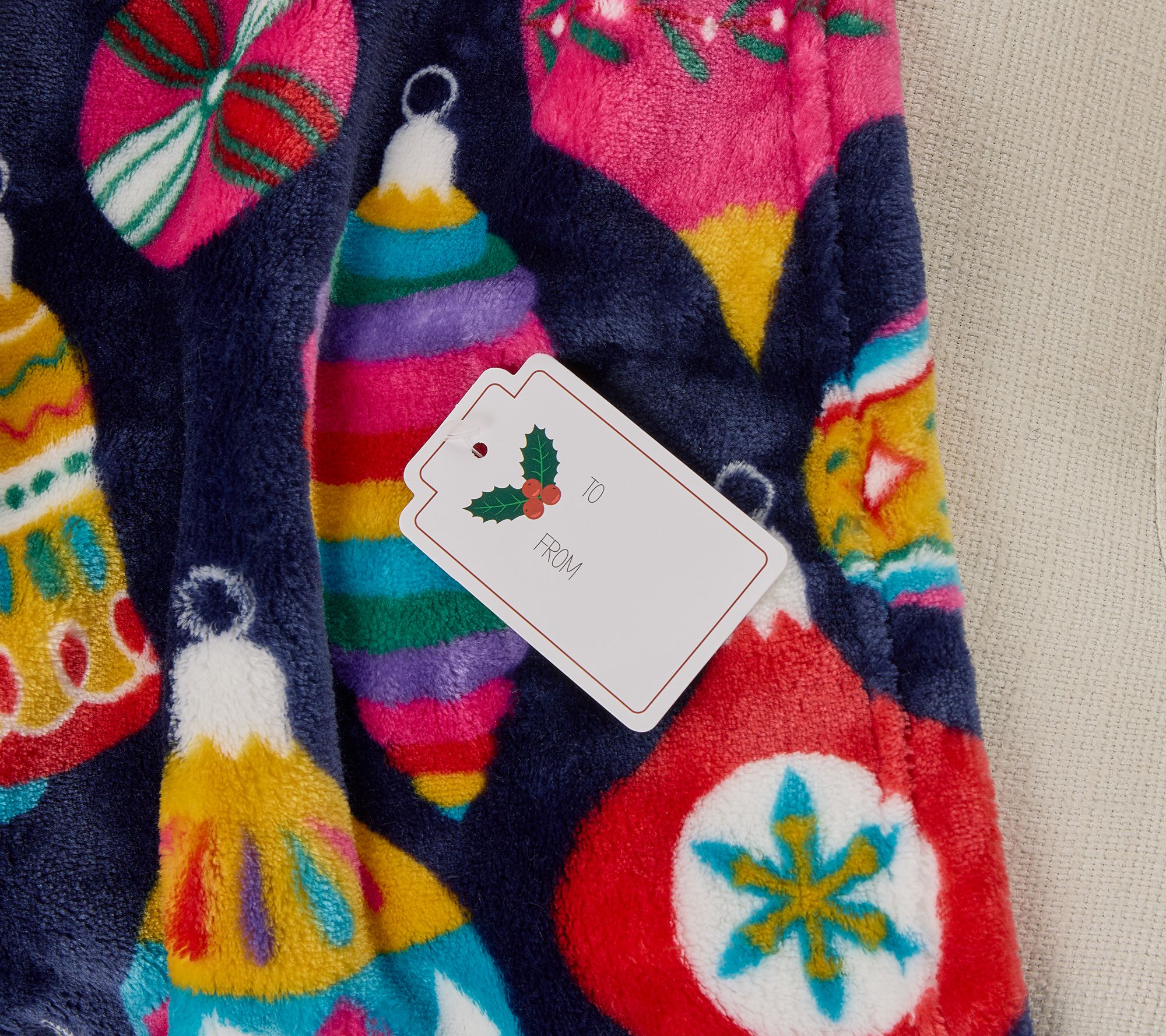 Make every movie night or wintry afternoon feel a little more magical with this oversized plush holiday throw, featuring a festive design and a luxuriously soft feel that invites you to relax and unwind. Its generous size lets you (maybe two!) snuggle up on the sofa, or layer it across your bed for instant warmth and holiday spirit. Got the hard-to-buy-for blues? Send them one, too. From Kringle Express.