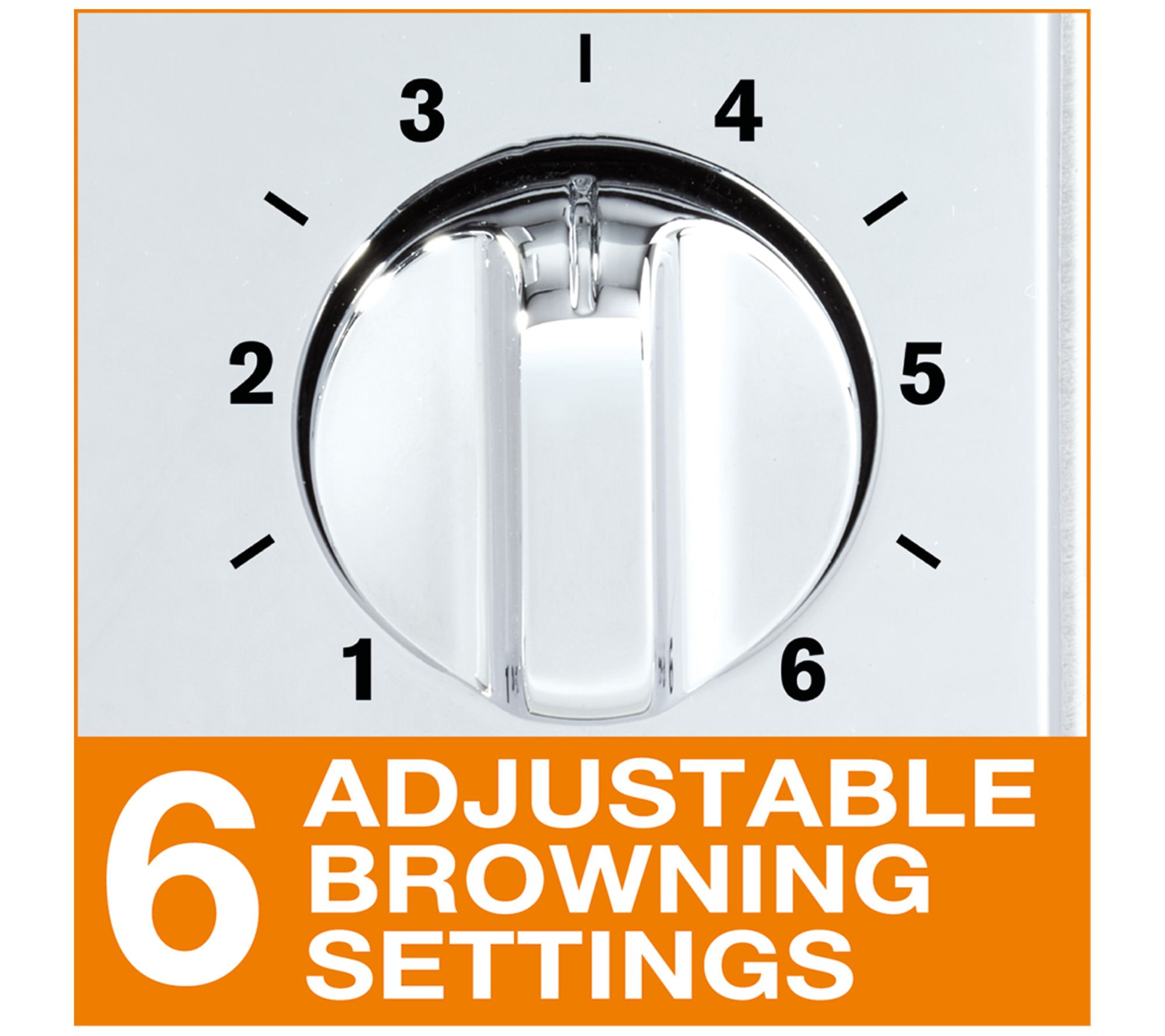 Start your mornings right with this two--slice toaster. Featuring six browning levels and extra-deep slots, it ensures your bread is toasted to perfection every time. The convenient high-lift lever and multiple functions make it easy to enjoy a variety of breakfast options. From Krups.