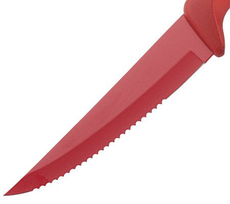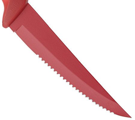 Say goodbye to dull knives! These super-sharp steak knives are truly a cut above the rest. Gliding through meat like butter, they have a nonstick coating that helps with easy food release. Plus their bright, colorful design is sure to liven up any table. From Kuhn-Rikon.