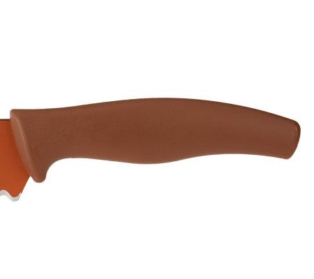 What's better than sliced bread? This fun bread knife, designed to look like a baguette. The long, sharp, serrated blade slices through all sorts of breads, as well as tough-skinned melons, tomatoes, and much more. From Kuhn-Rikon.