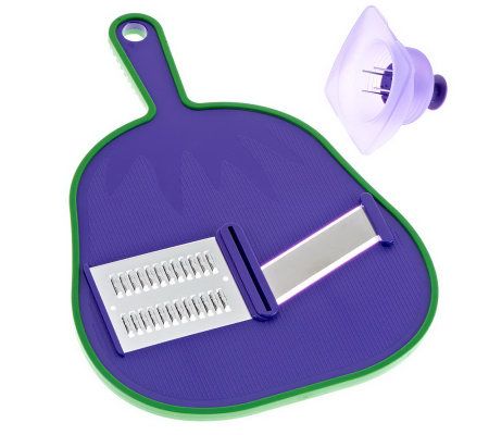• Includes vegetable board with dual slicer and attached safety guards, plus a finger guard