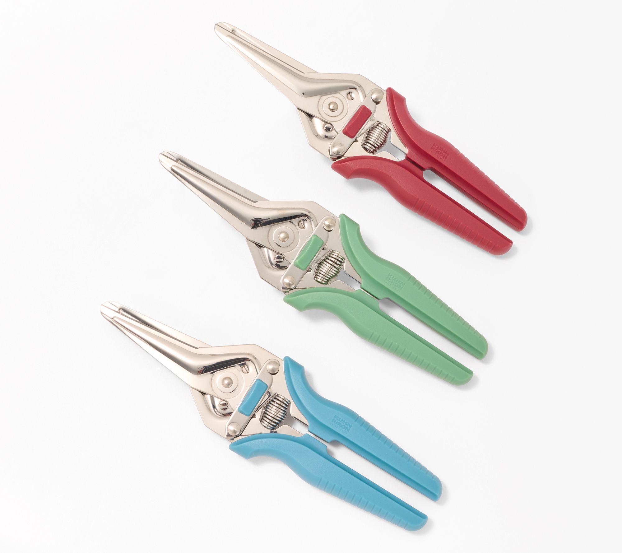 This Kuhn Rikon set of shears is a true MVP -- Most Valuable Present! Clamshell packaging and outdoor chores are no match for these self-sharpening shears. Designed for both left- and right-handed users, the all-purpose household helpers feature steel blades and a curved design that cut to the chase -- tackling almost any task. Keep a pair: