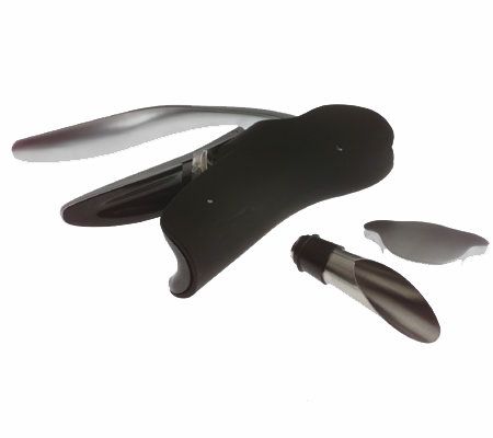Open wine like a pro! Easy-to-hold opener attaches quickly to wine bottles and removes corks with an effortless, lever pull action. Quality all-metal gear with soft touch accents. Packaged in a high-gloss gift box. Wipe with warm soapy water and soft cloth.
