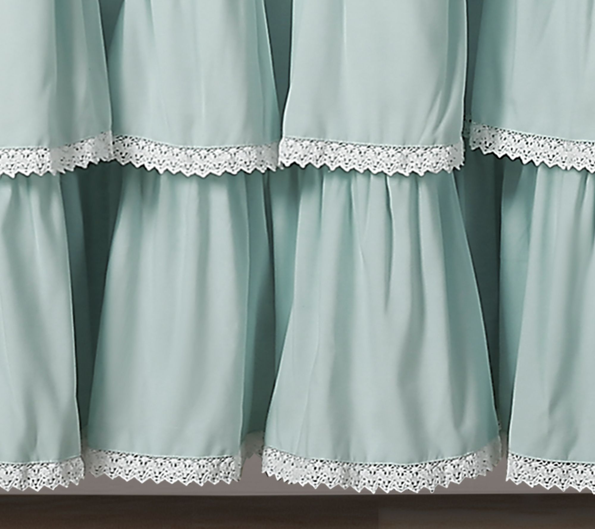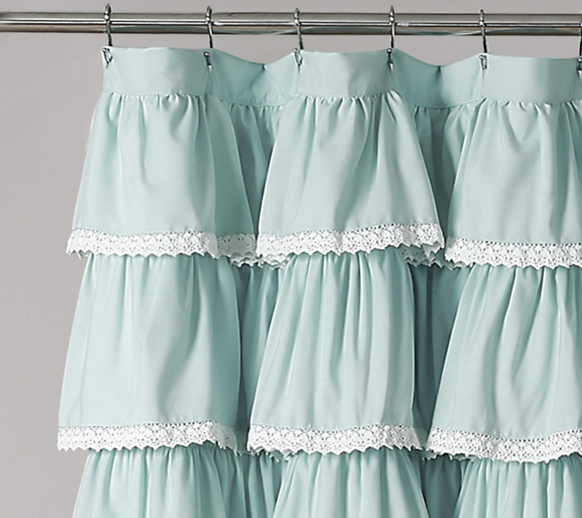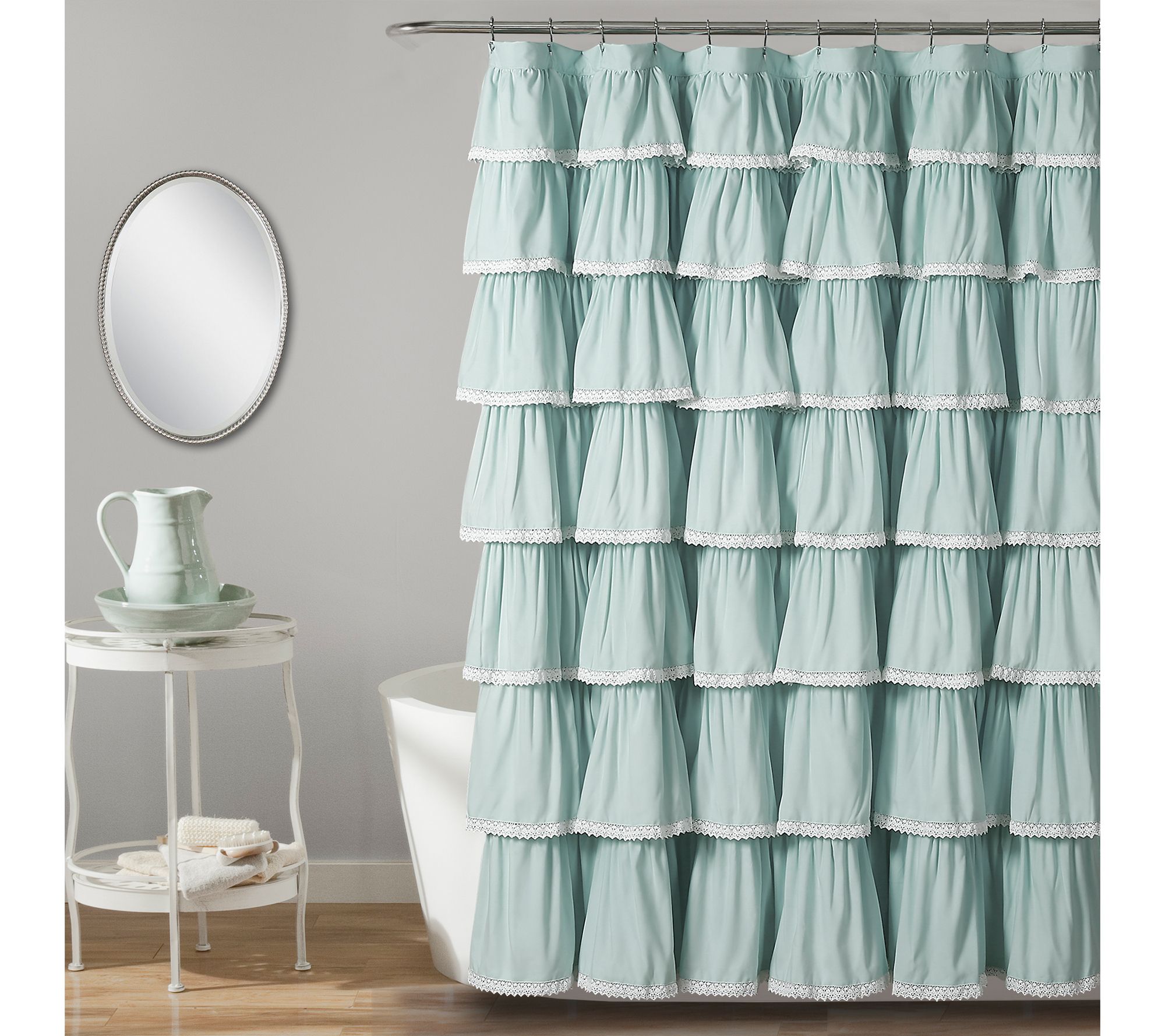 Bring a touch of class, style, and fun into your bath with this shower curtain's elegant layers of ruffles and lace trim. From Lush Decor.