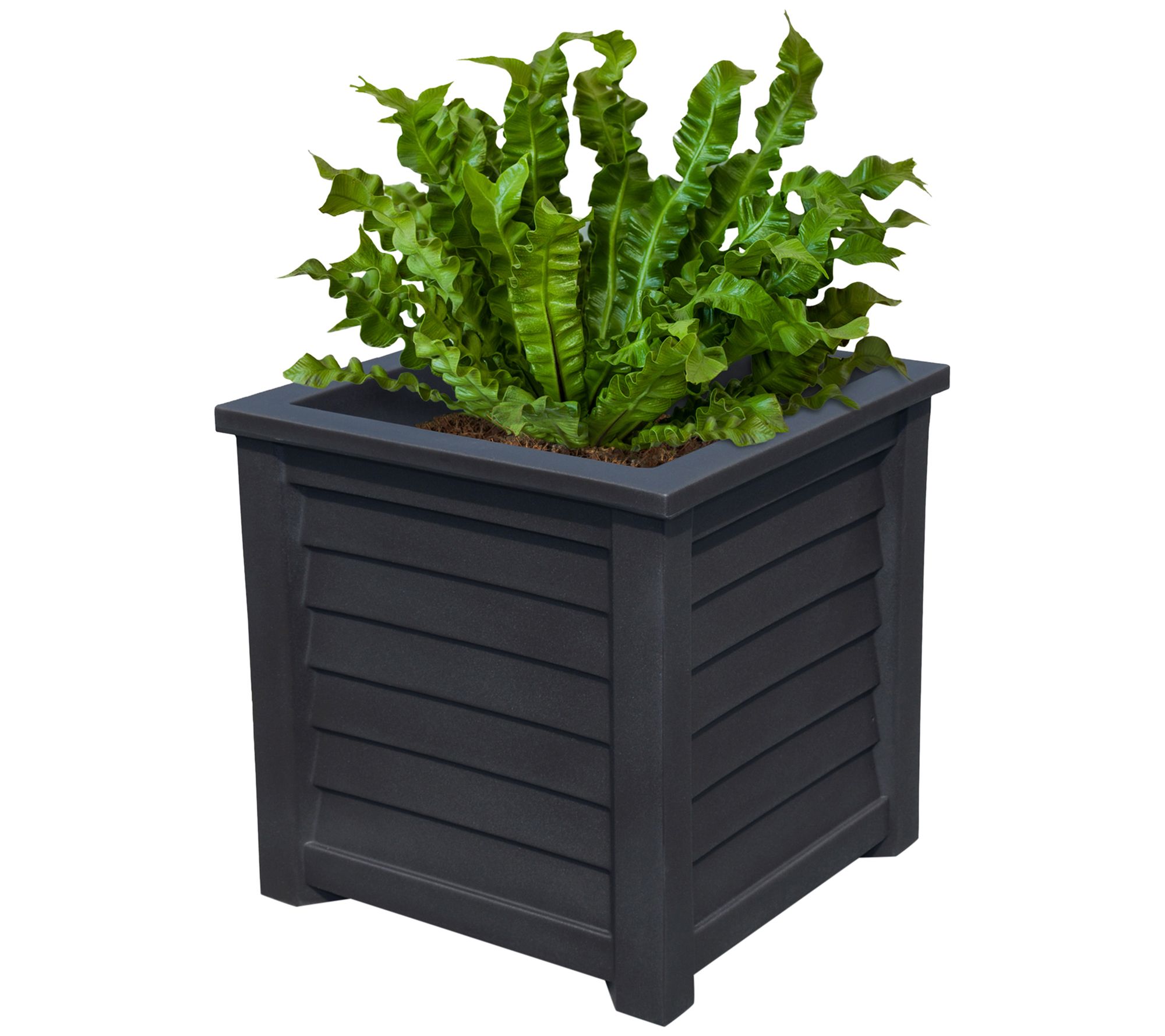 Get the look of a wood planter without the weather worries. This Lakeland planter, with its durable resin construction, makes an ideal addition to your outdoor entrance, patio, or deck. The built-in reservoir encourages healthy plant growth for your flowers, ferns, or plants.