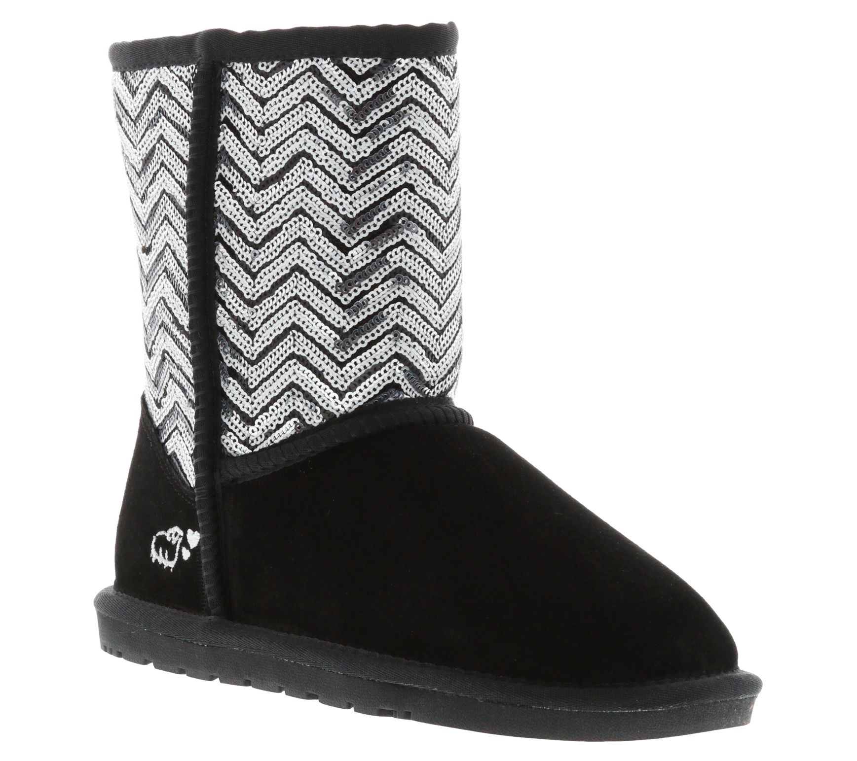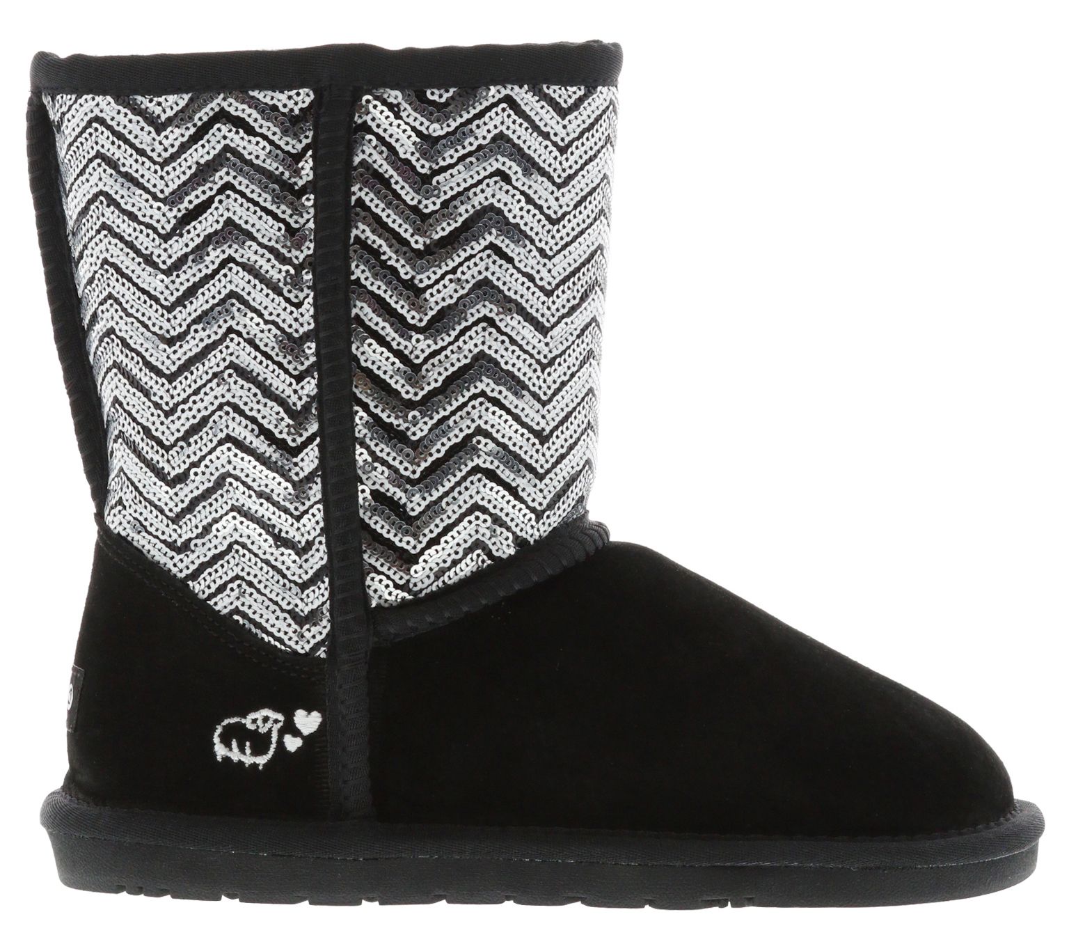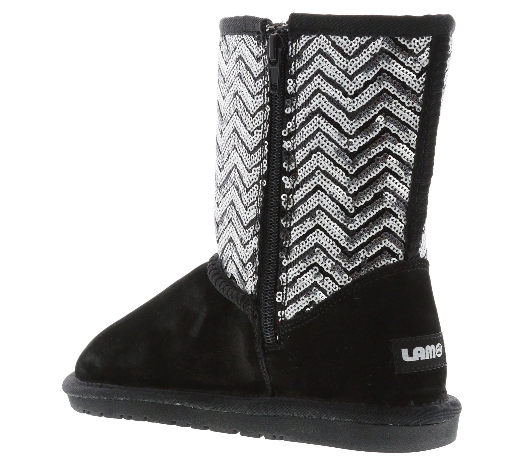 Keep feet feeling cozy and looking stylish with these shimmering boots, featuring soft faux fur lining and oodles of sparkling sequins. From Lamo Sheepskin.