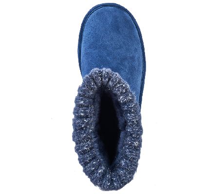 Toasty toes are in this winter! To help your feet beat the cold, try these Lamo suede boots on for size. A water-resistant exterior helps guard against the chill getting in, and the fleece lining helps to keep the warmth from getting out. The knit sweater cuff adds to the cozy feel--it's like having a fashionable winter scarf for your feet! Don't let the weather stop you from venturing out this season. Slip into these durable boots and wander through the winter wonderland in comfort and style. From Lamo.