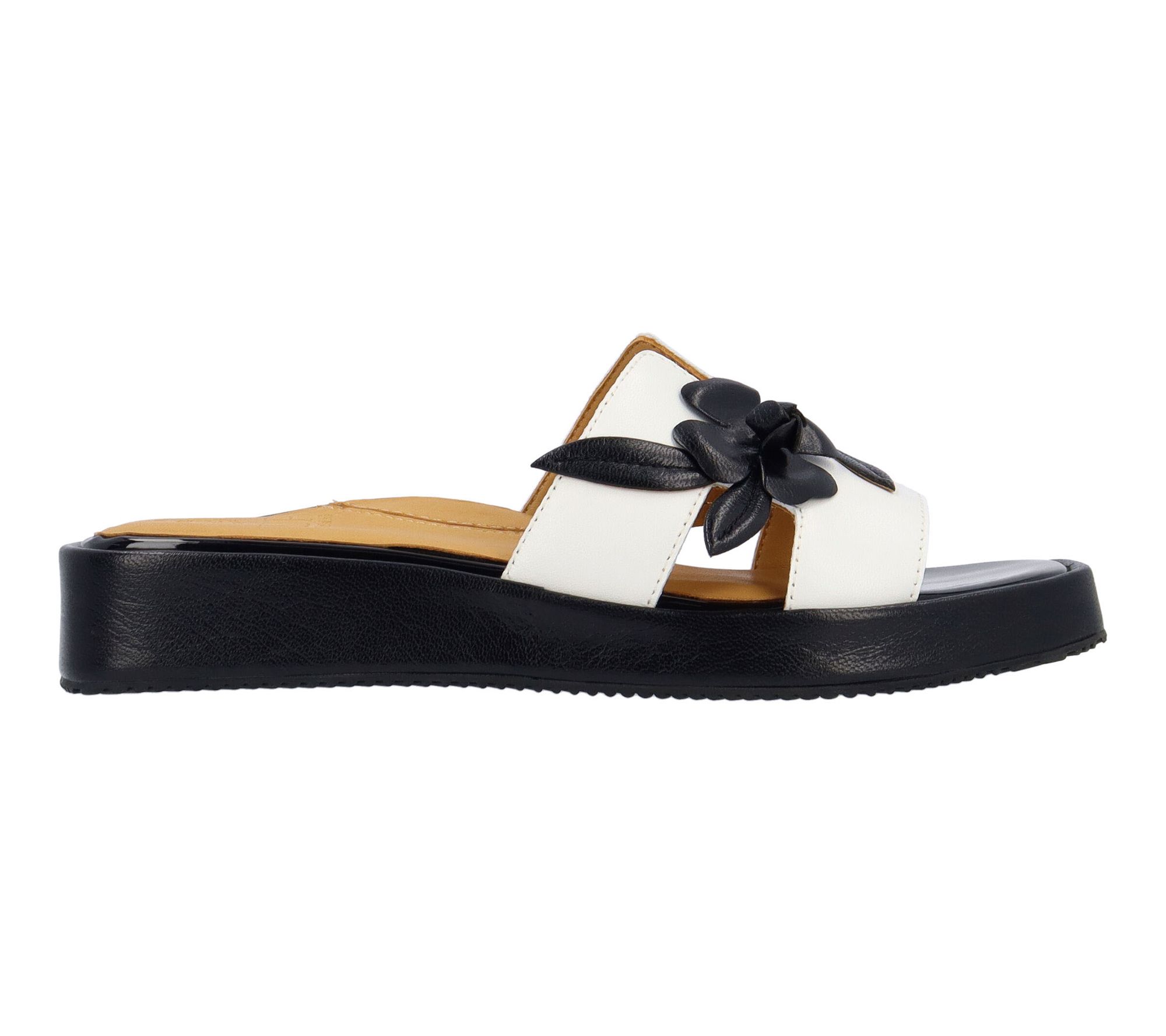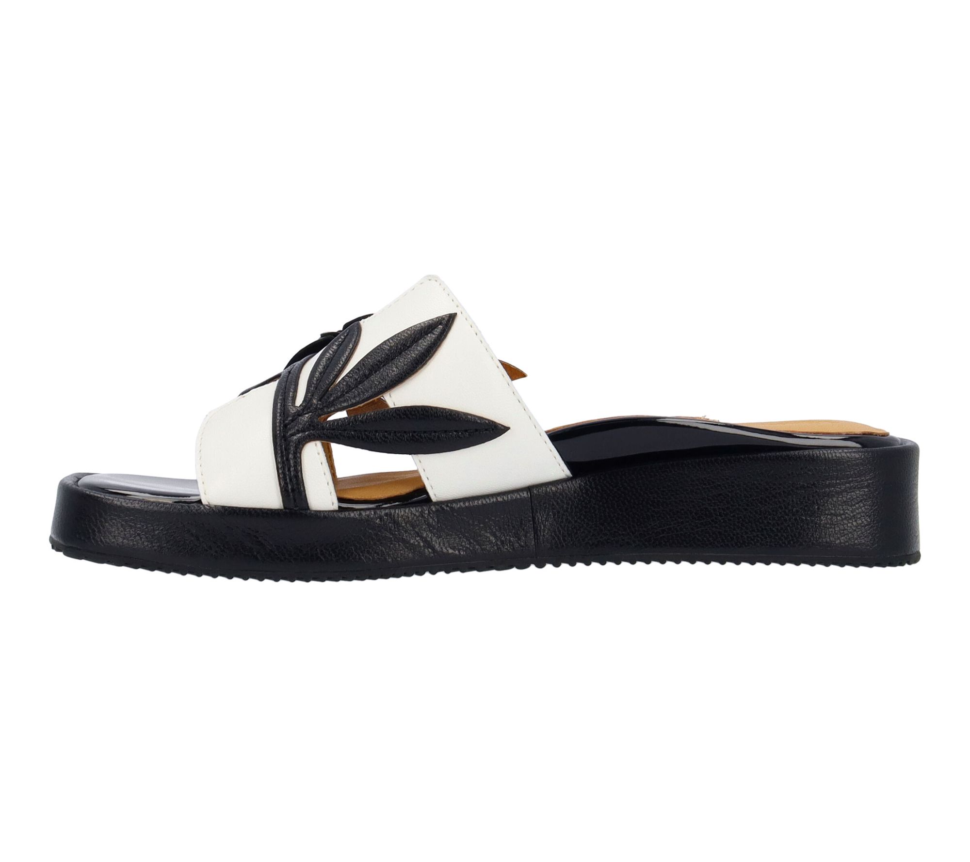 A stroll through sunny city streets or a relaxed evening outdoors gets a chic update with these slide sandals. A cushioned memory foam insole and supple leather lining keep every step comfortable, while the sleek square toe and modern color pairing add a fresh twist to your wardrobe. From L'Amour Des Pieds.