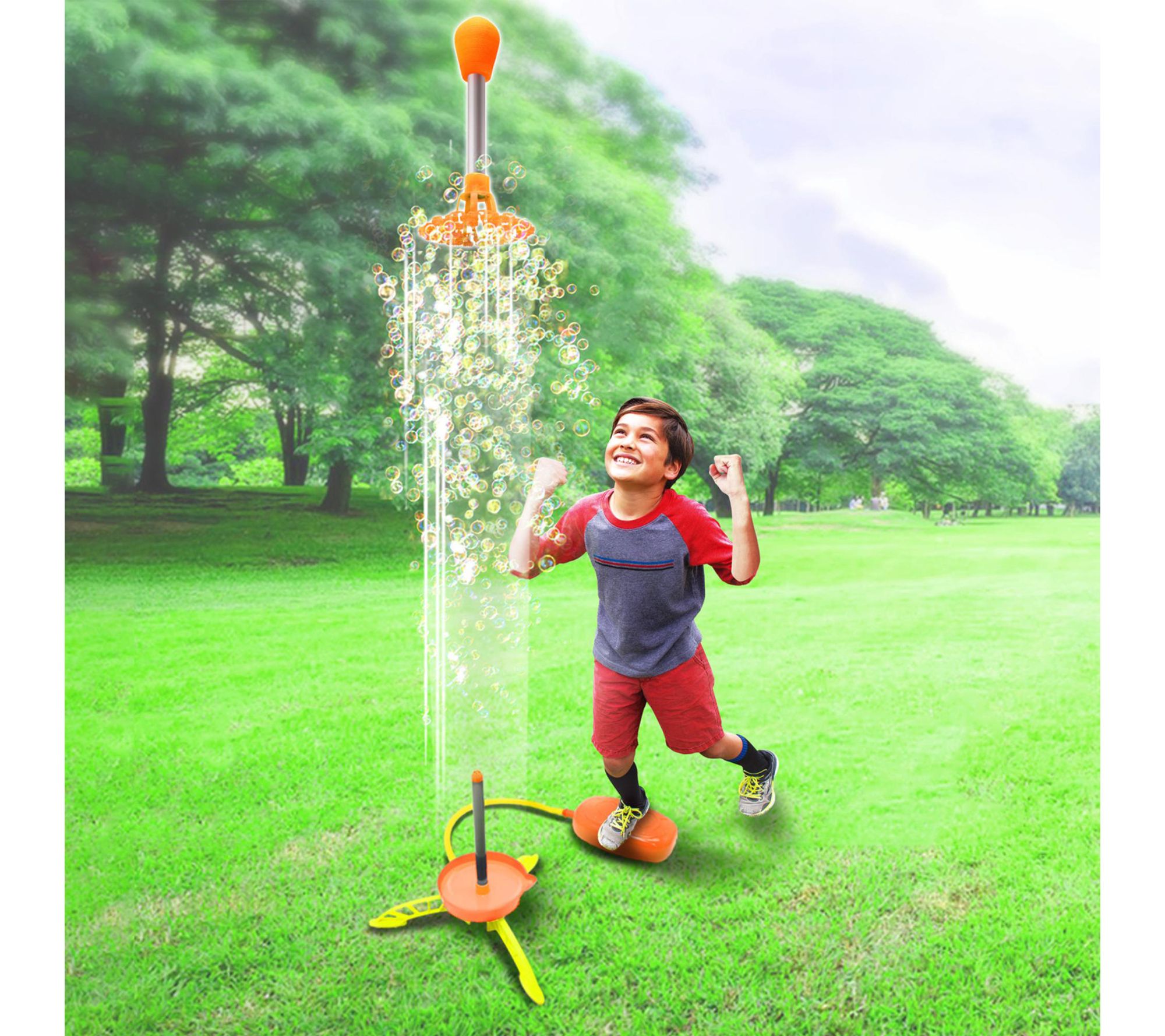 • Includes Bubble Rocket, launcher, stomp pad, and 8-ounce bottle of bubble solution