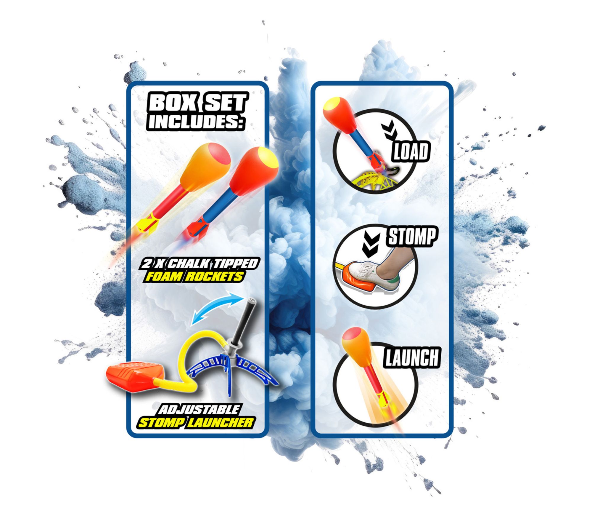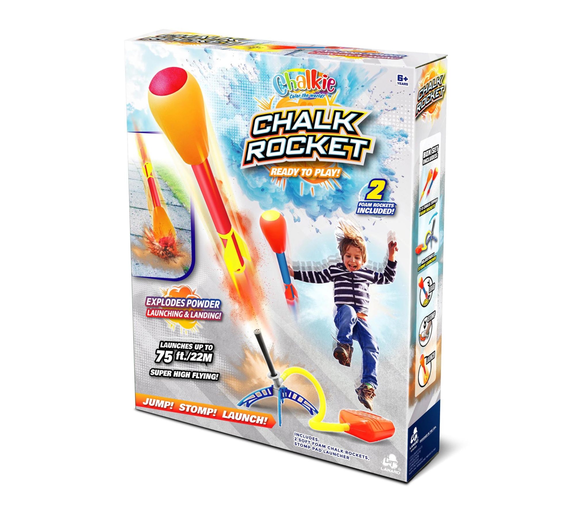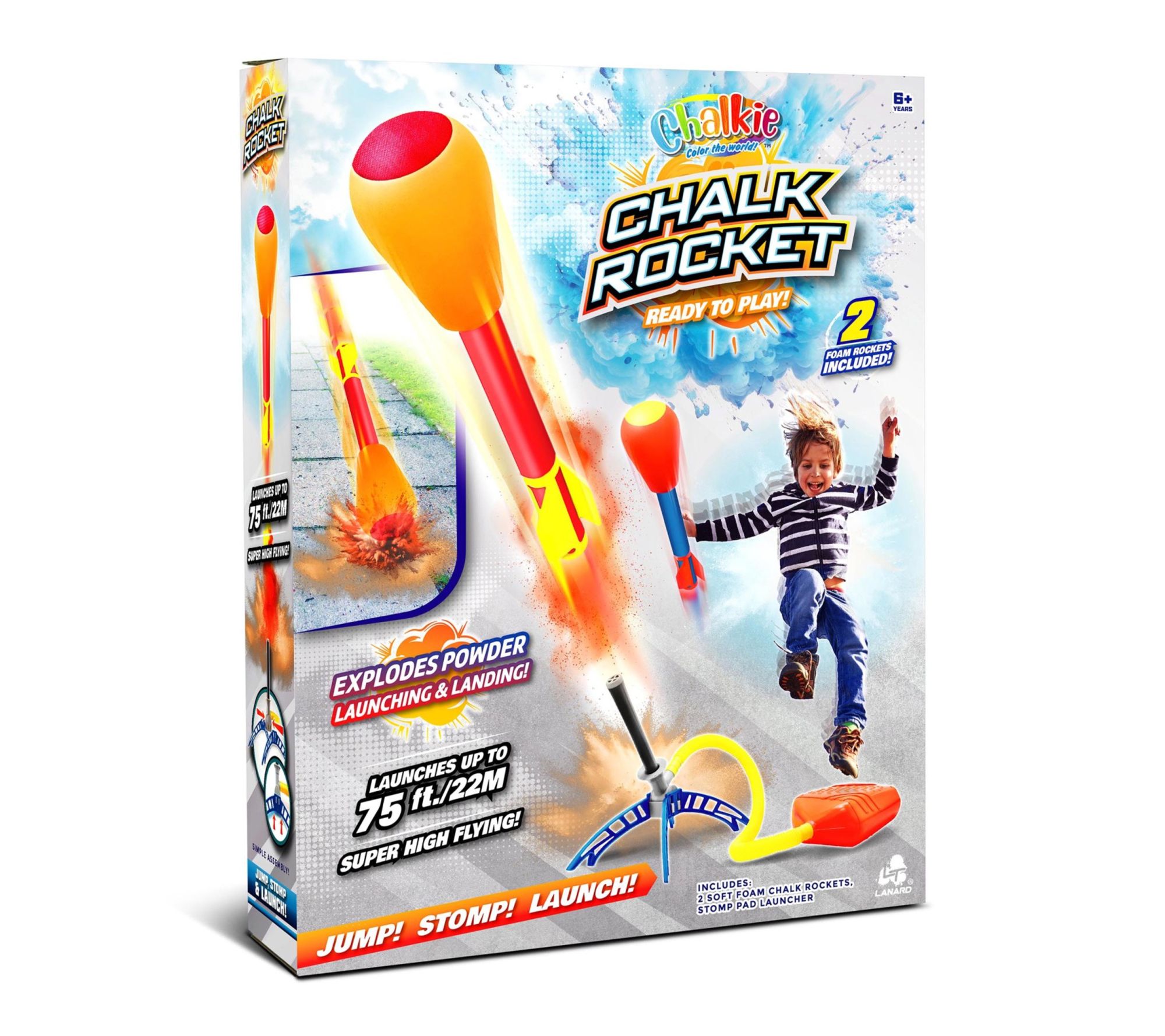 • Includes two chalk rockets and one stomp pad launcher