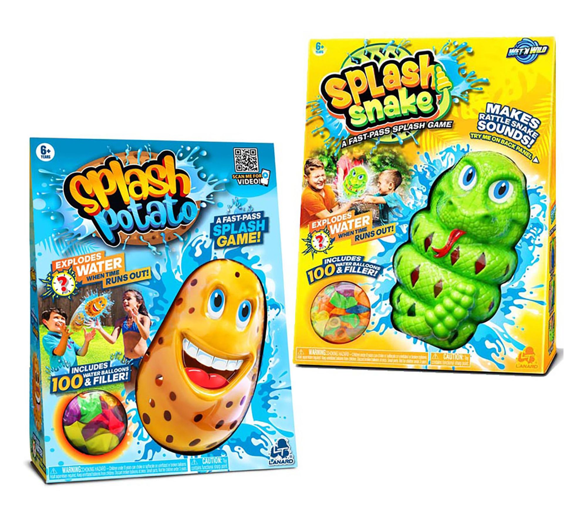 Bring extra laughter and excitement to backyard gatherings with this fast-paced water toy set. Toss the Splash Potato or Splash Snake around with friends and family, but watch out -- the suspense builds until someone gets a surprise soaking! This bundle offers endless active fun for outdoor parties and sunny play days. From Lanard.