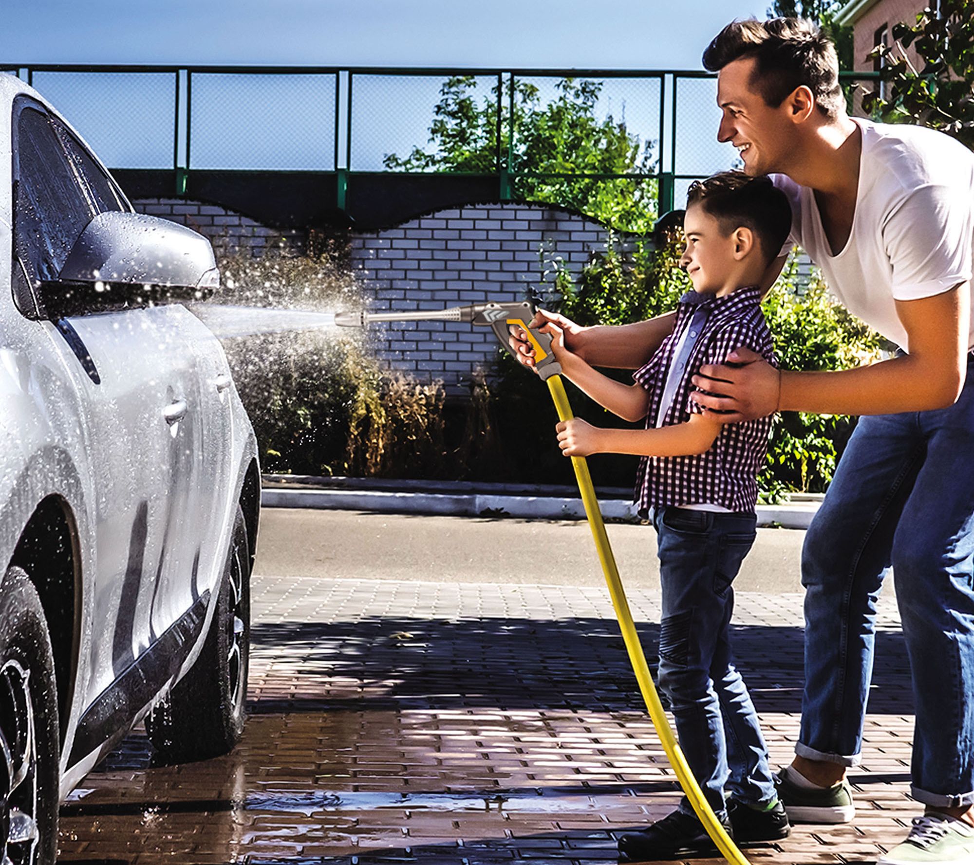 • Includes water pump, hose, and pressure washer
