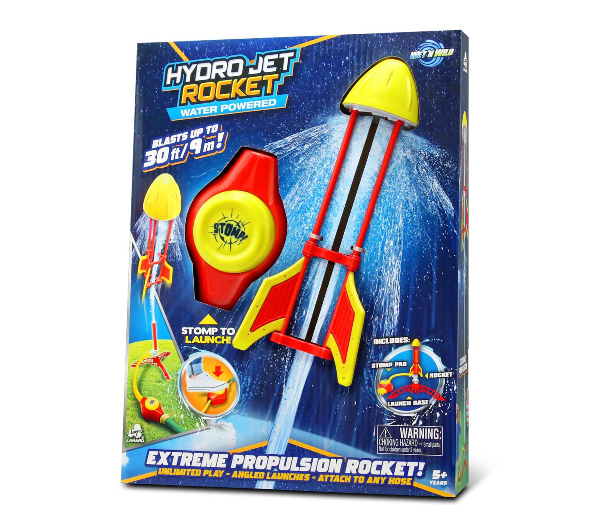 With the water-powered Hydro Jet Rocket, outdoor play gets a blast of excitement as friends and family challenge each other to launch the rocket skyward -- up to 30 feet. Creative targeting games and quick setup make backyard adventures lively and unforgettable on any sunny afternoon. From Lanard.
