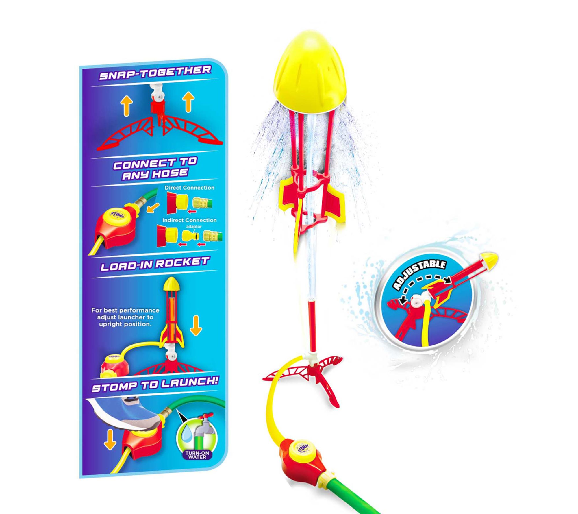 • Includes one high-performance rocket, adjustable launcher, and stomp pad