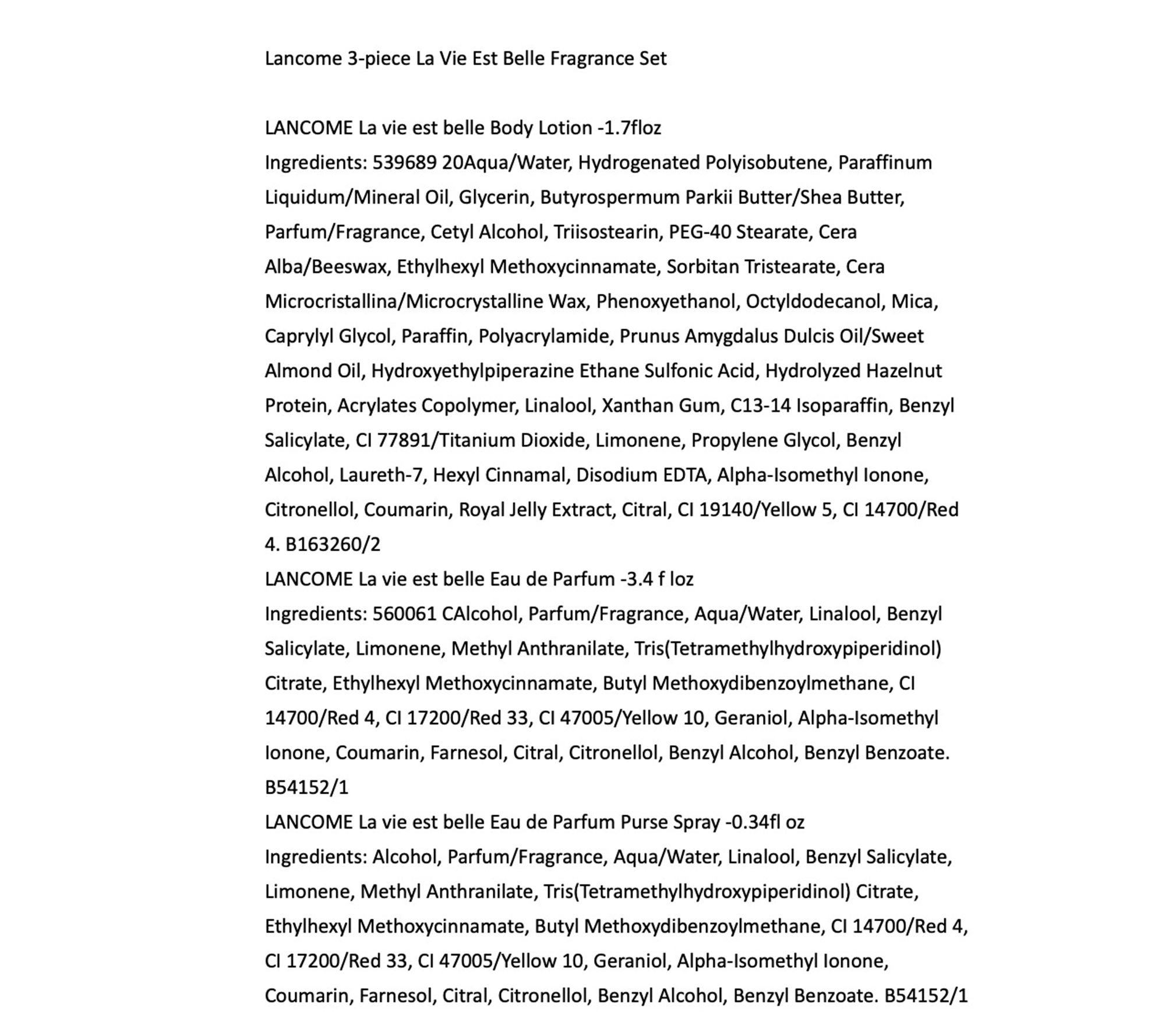 This three-piece set gives you La Vie Est Belle from Lancome in three versions: one eau de parfum to keep on your dresser, one purse spray to keep in your handbag, and one moisturizing body lotion so you can layer the sensual fragrance.