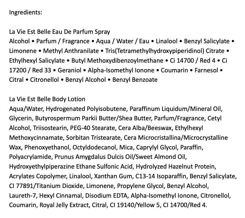 A floral gourmand bouquet encapsulated in a crystal smile, La vie est belle is an unforgettable fragrance. Precious Iris accord with vibrant earthy notes of patchouli, sensual warm vanilla, and spun sugar are combined in this scent created by two of the most renowned French perfumers -- Anne Flipo and Dominique Ropion.