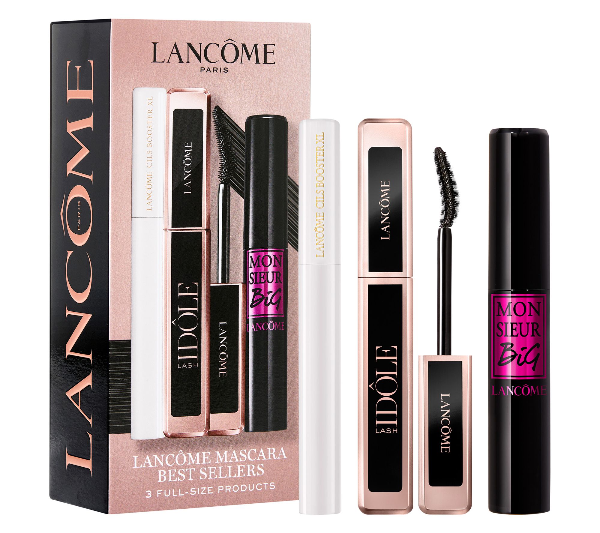 Gift the extraordinary with this three-piece set of Lancome lash must-haves: Cils Booster XL, Lash Idole, and Monsieur Big Mascaras!