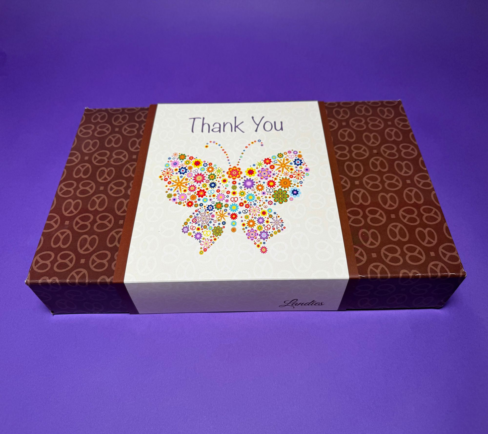 "Thank You" never sounded (or tasted!) so sweet. Gift or send them treats on repeat with this box of cravable confections from Landies Candies. A scrumptious assortment of chocolate-covered cookies and crunchy pretzels with flavorful toppings is the perfect way to show your gratitude. Make their day! From Landies Candies.