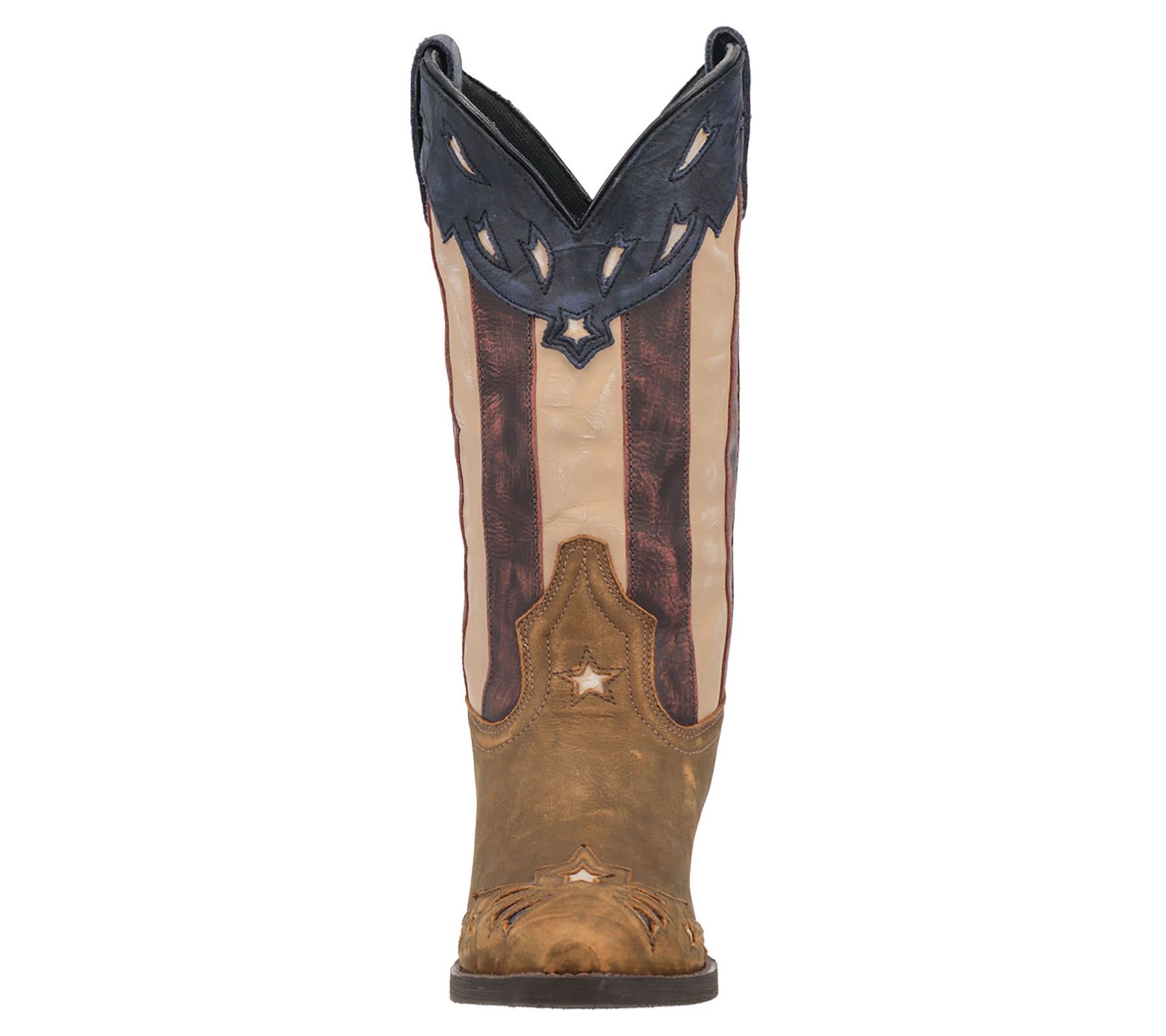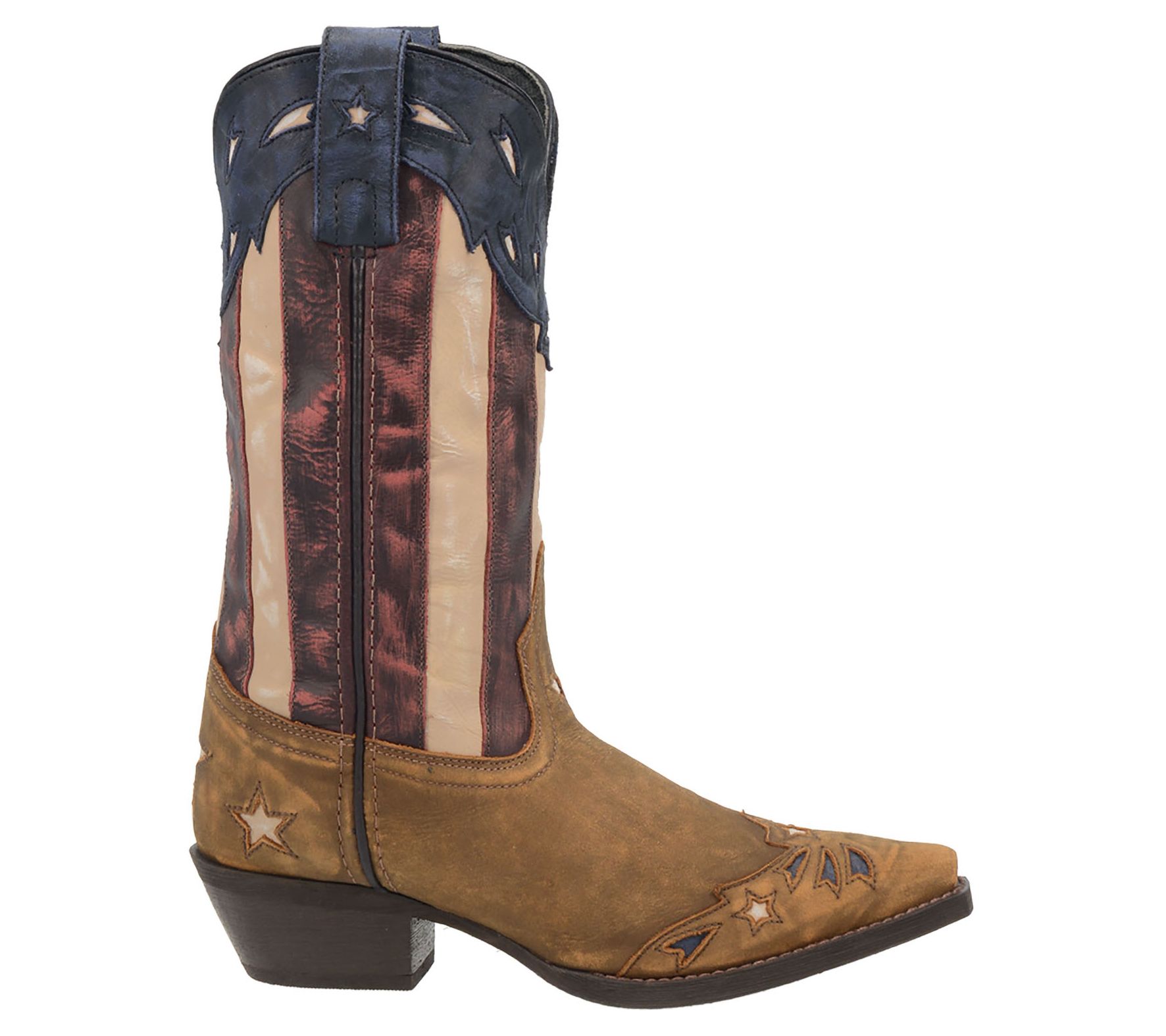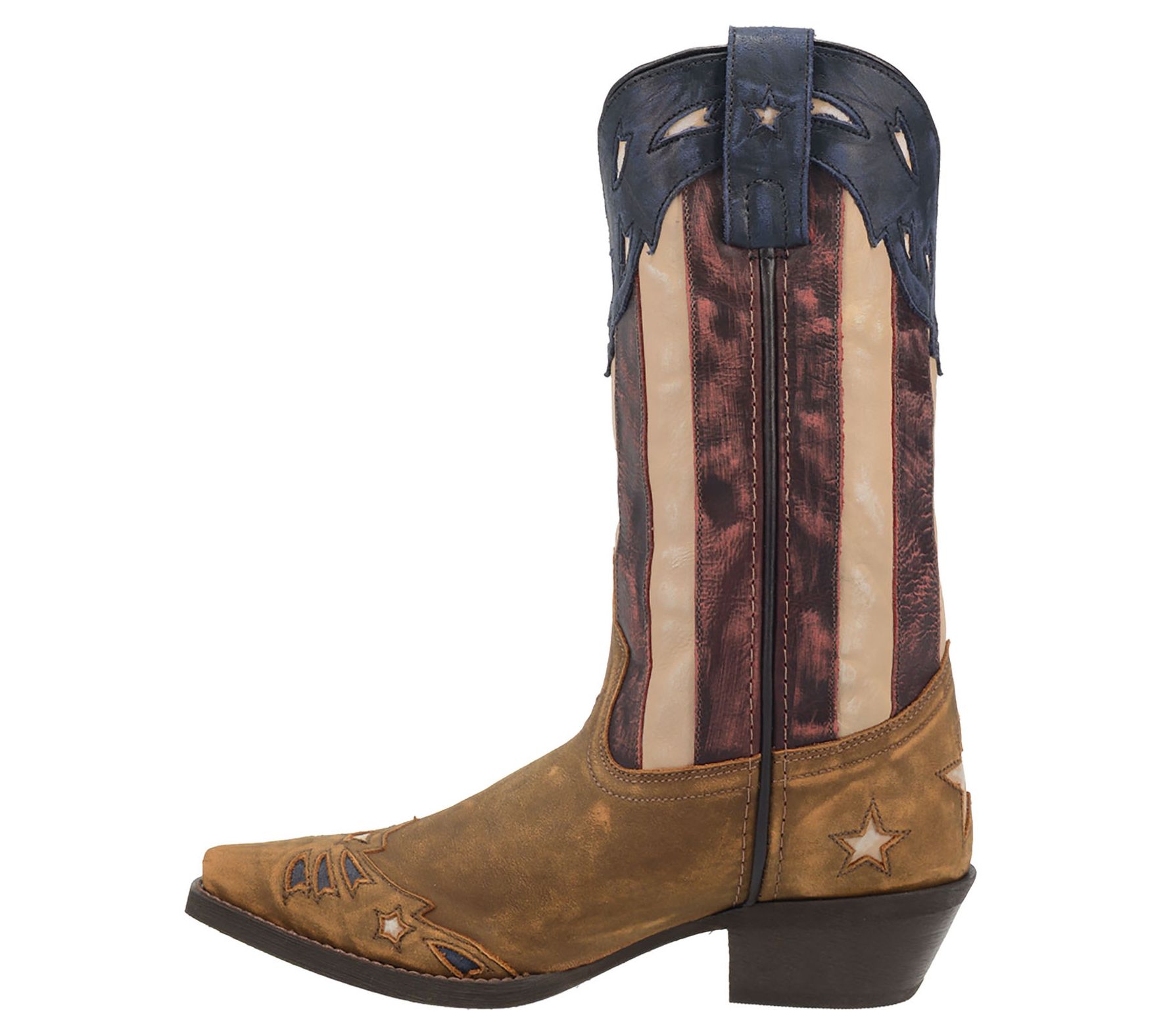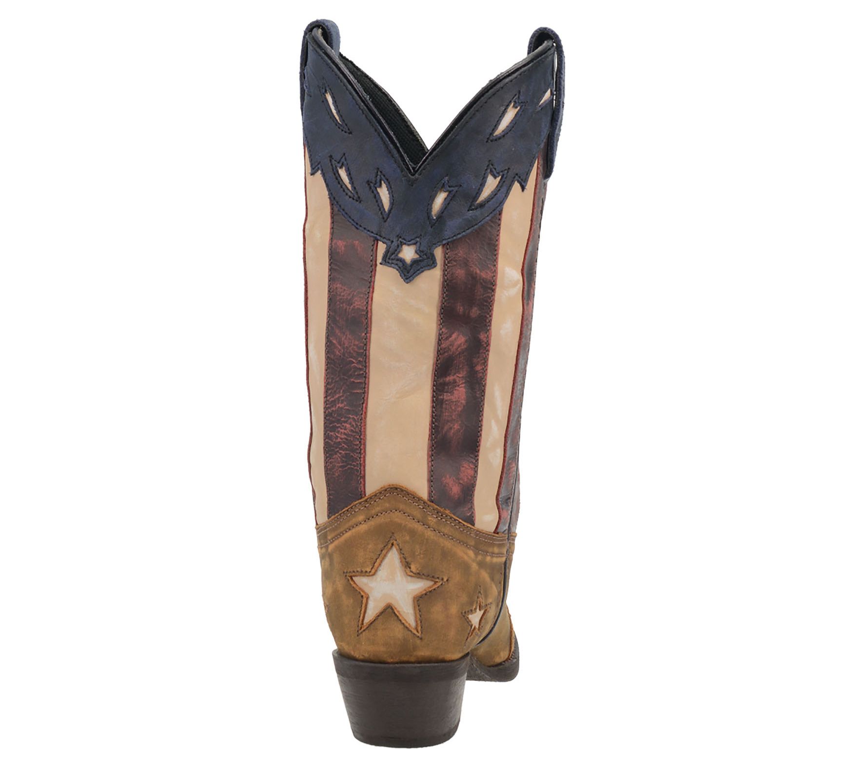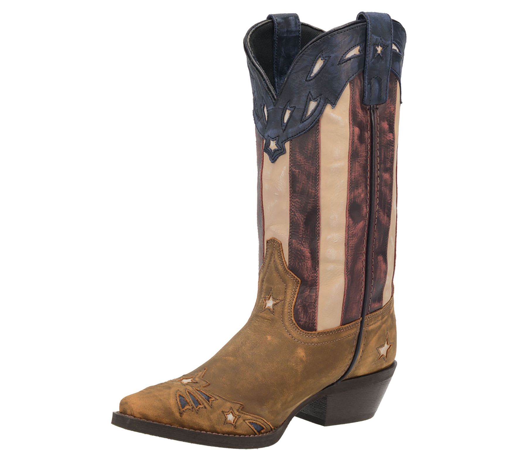 Give your gait a patriotic edge with this iconic cowboy boot standing tall on a stacked heel for confident striding. From Laredo.