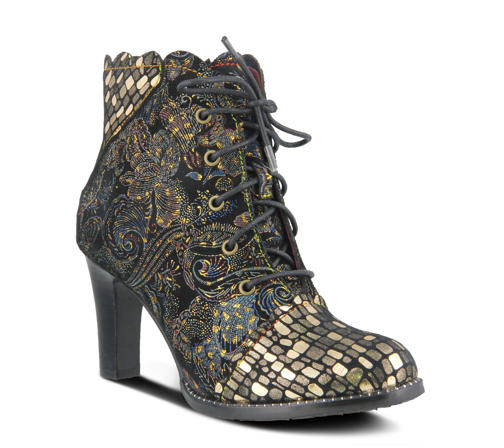 With these metallic patterned leather ankle boots, you'll be walking on wearable works of art. From L'Artiste by Spring Step.
