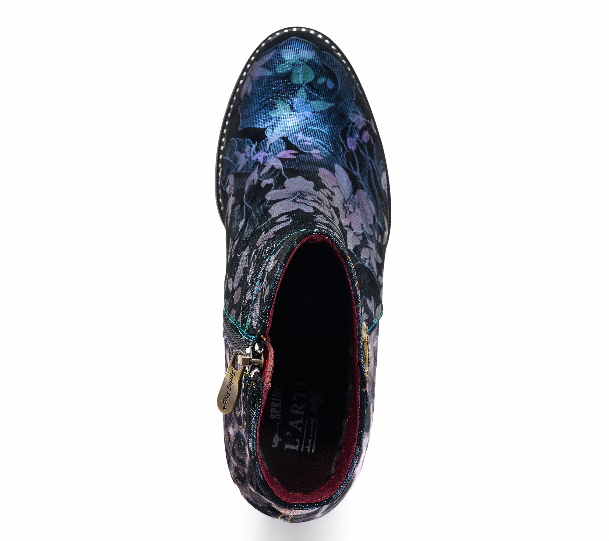 Permission to go a little wild. This heeled boot is a whole new animal thanks to bold florals and rich animal-printed velvet. Effortlessly dress up workdays or add flair to weekend ensembles with a sculpted heel and a vintage-inspired button detail. From L'Artiste by Spring Step.