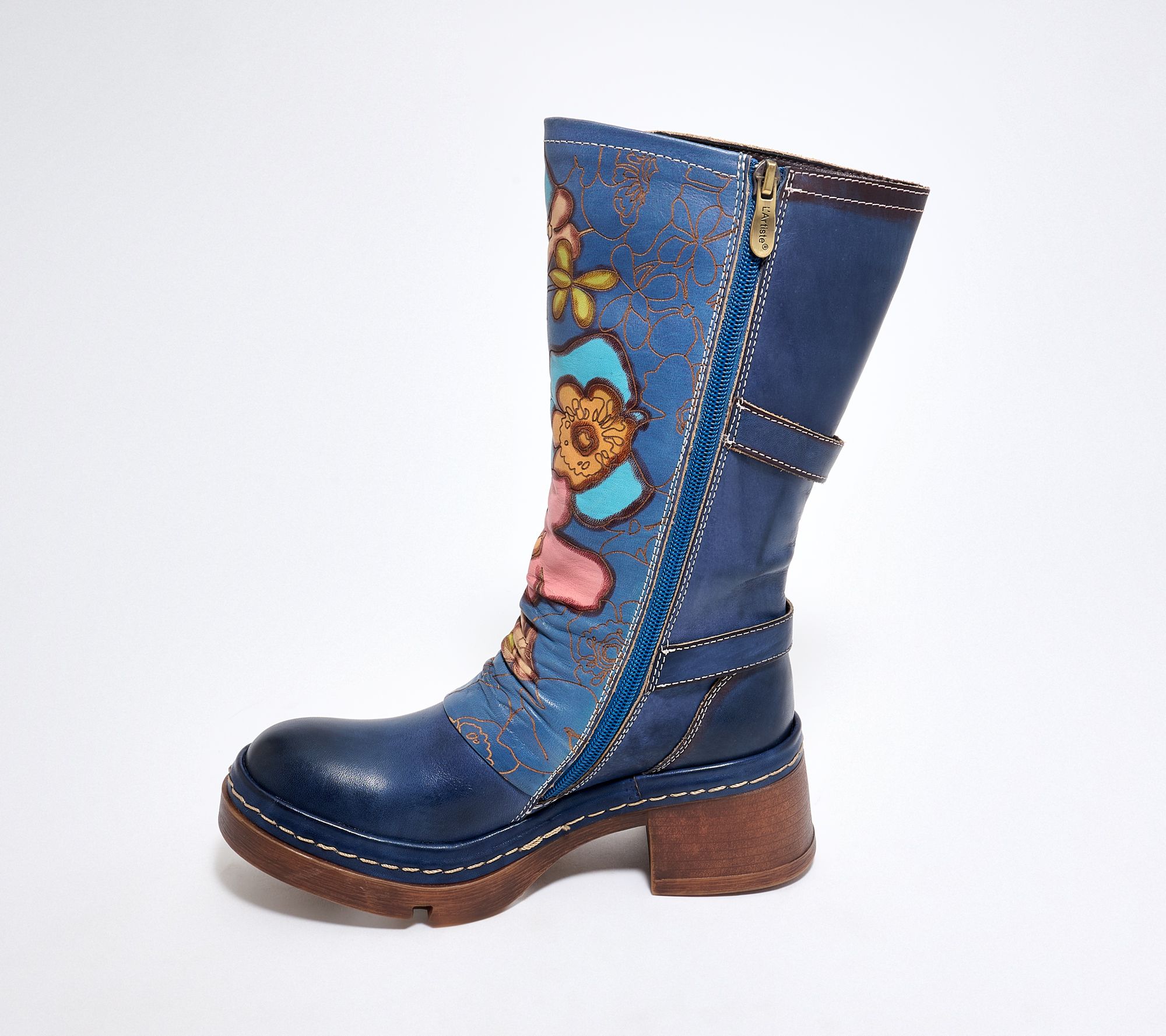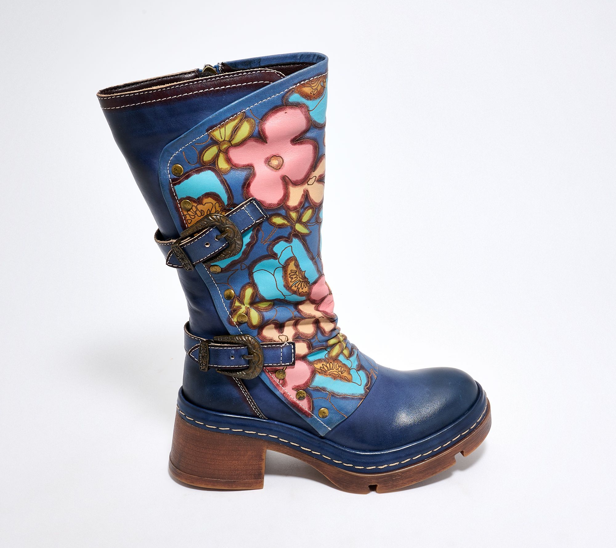 Upgrade cool-weather outfits with these super-cool leather mid boots featuring detailed floral artwork and rich burnished tones. Dual buckle accents and a full-length zipper make them easy to wear, while the silhouette delivers ample coverage for crisp days. From Spring Step.